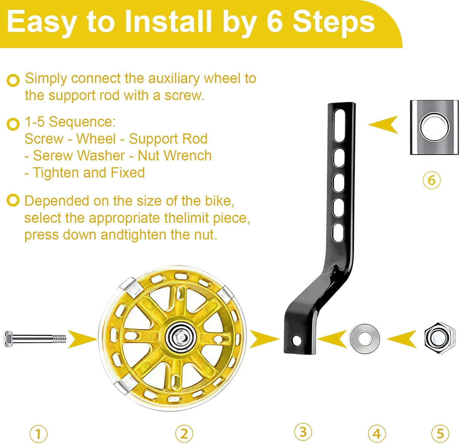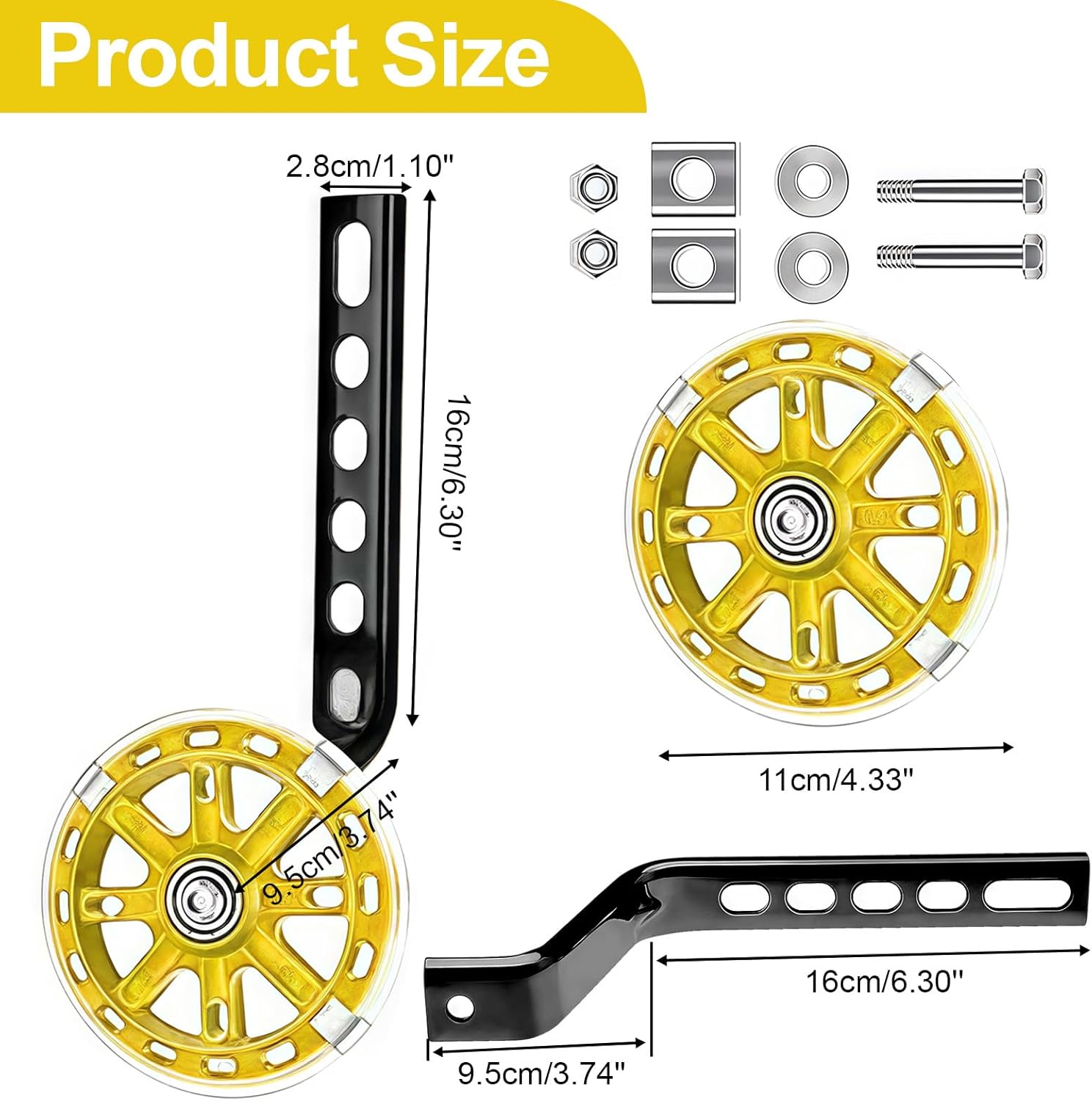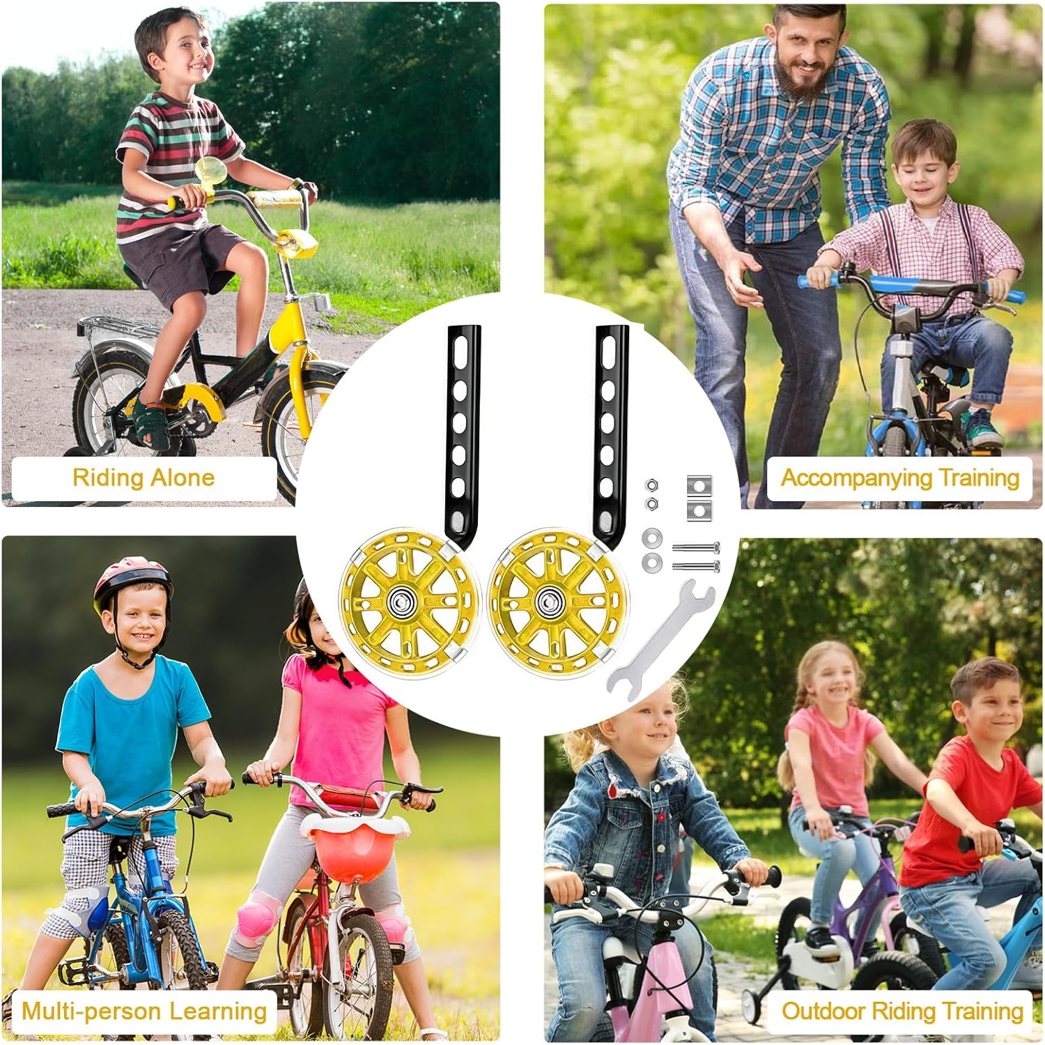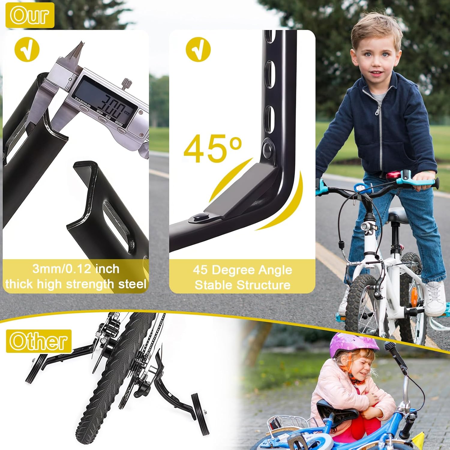 Enhance confidence and independence: By using these training wheels, children can gain Confidence and independence in their biking skills. The stability provided by the training wheels allows kids to learn at their own pace and gradually build their riding skills. As they become more comfortable, the training wheels can be gradually raised or removed to transition to riding without assistance.