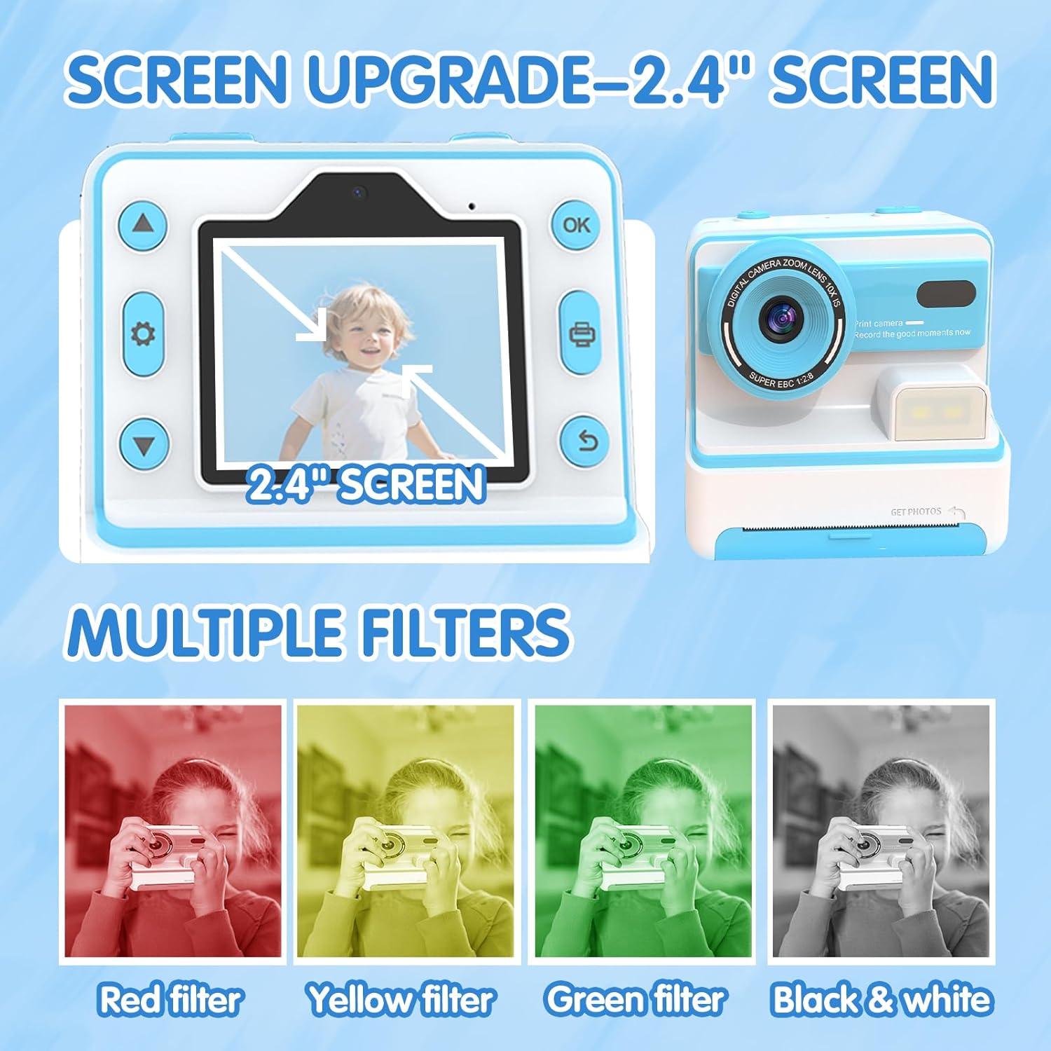 5 reviews for Kids Camera Instant Print, 26MP Front and Rear Camera, 1080P Kids Digital Cameras with 32GB Card and 3 Rolls of Photo Paper, Takes 12000 Photos, for Girls and Boys Ages 3-12 – Blue