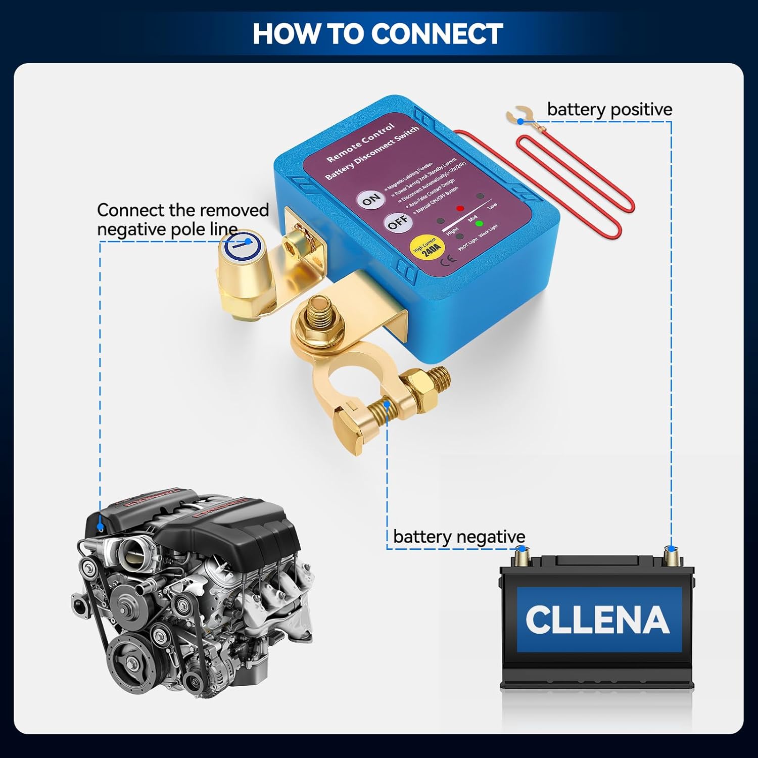 Smart Car Disconnect Switch: When the battery voltage is below 11.8 V, the remote switch automatically switches off after 120 s to save power, if the voltage is higher than 13.2 V, the remote control is deactivated to prevent accidental shutdown while driving, it can only be controlled by the manual switch