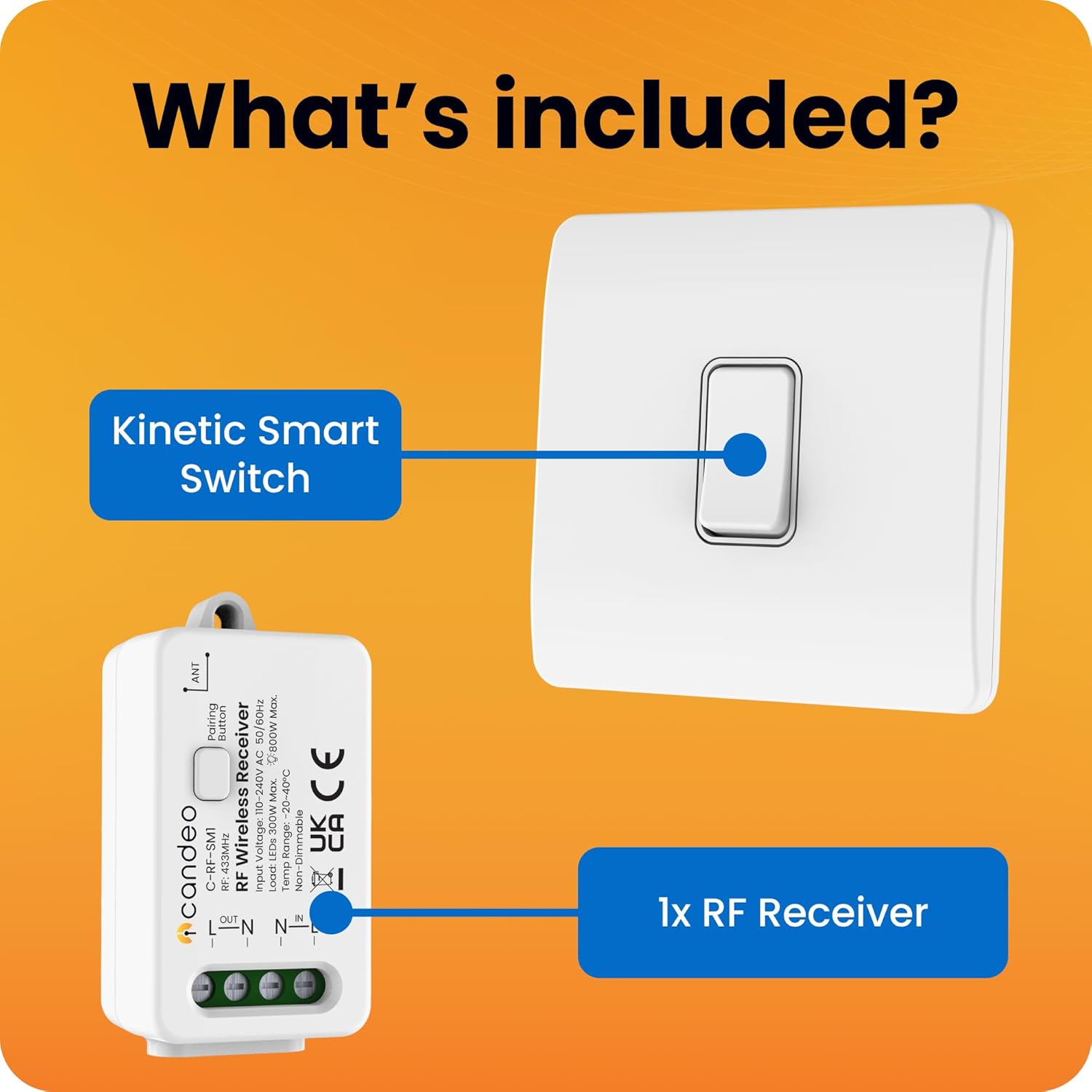 Excellent product. Installed a storage unit over existing switch and otherwise would have had to chase walls, install back box etc. Just left the existing switch in the on position, installed the receiver at the light fitting and the kinetic switch in the new convenient location. Would use these everywhere if building a new house.