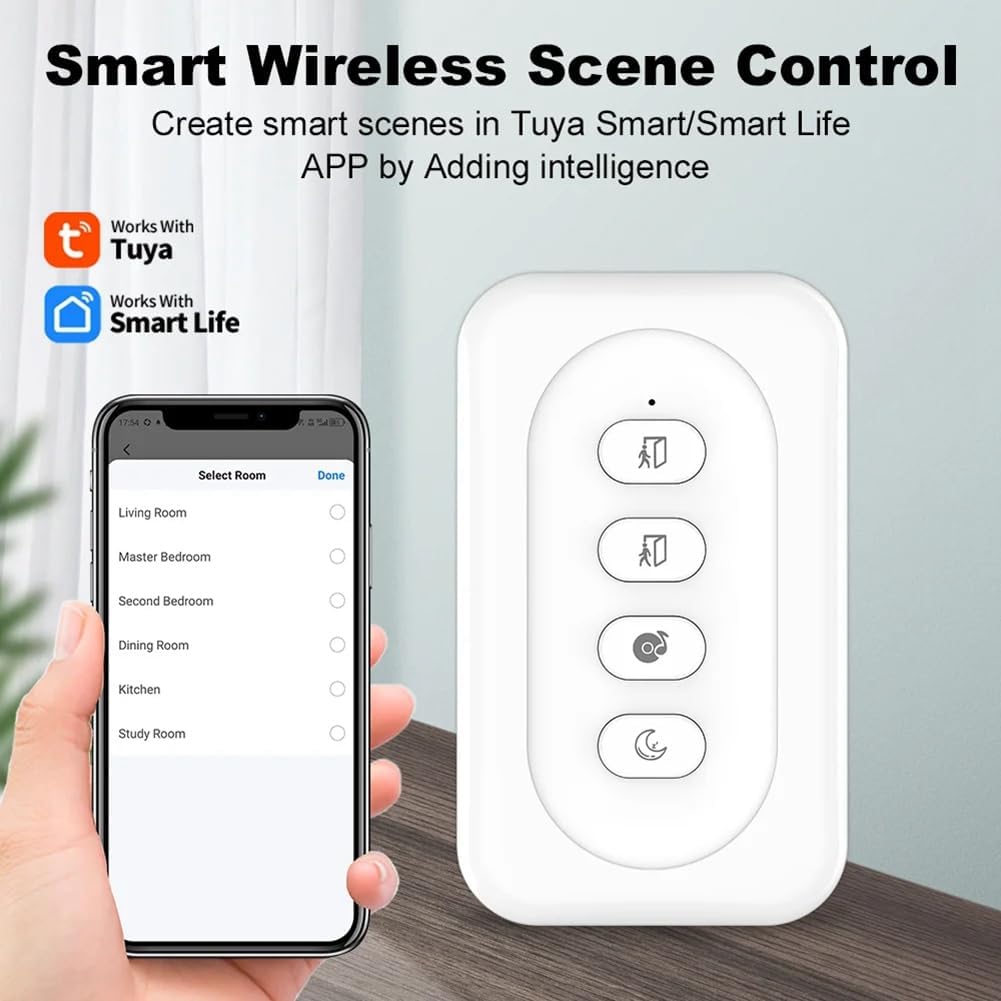1. New design the scene switch can be mounted with amagnetic attachment,allow the scene switch to beeasily detached and used at any time.Convenient you can hold it in your hand or use it as a remote control in any room
