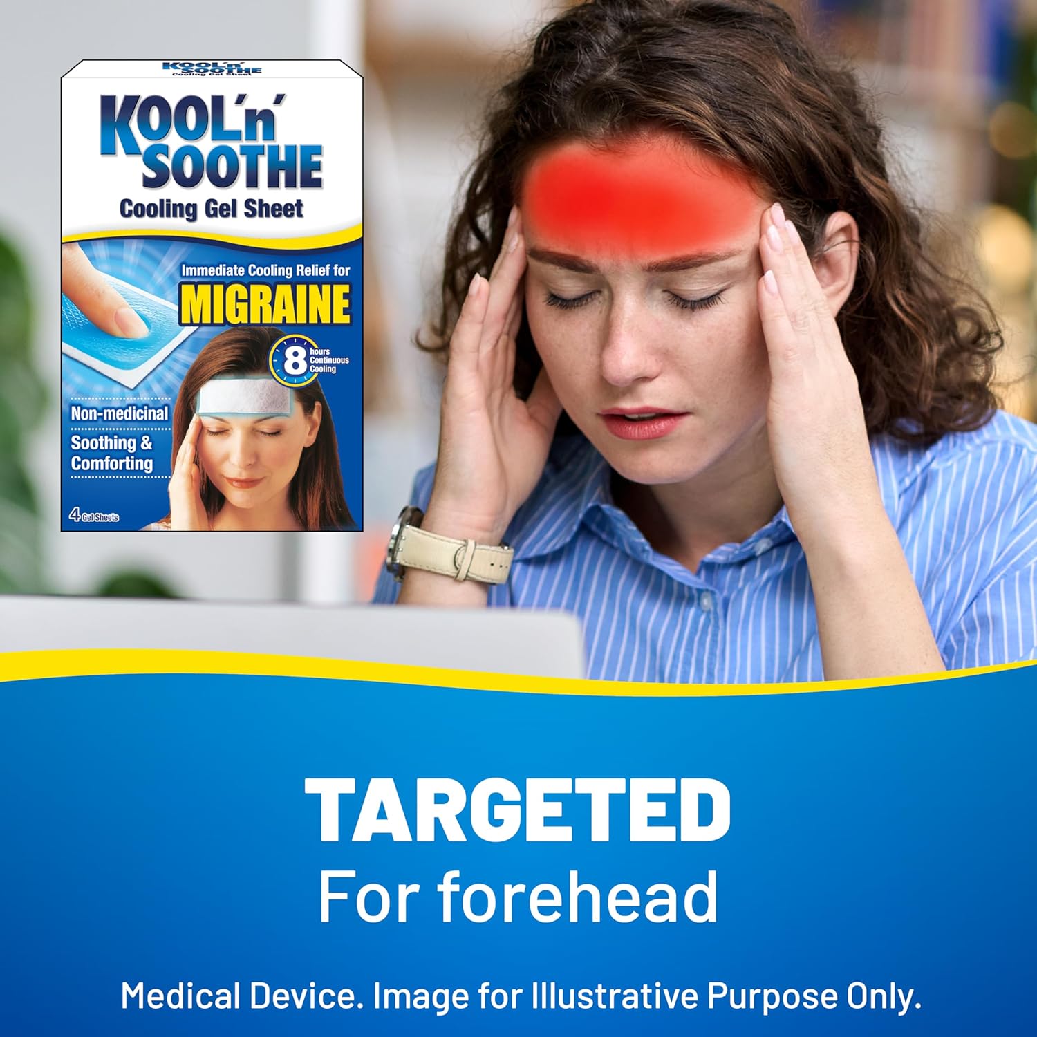 KOOL ‘N’ SOOTHE MIGRAINE COMPLETE CARE: Use Kool ‘n’ Soothe Migraine gel sheet for targeted cooling relief to the forehead/ back of the neck. Use Kool ‘n’ Soothe soft gel pillow to provide cooling relief to migraine in hard to reach/ larger areas