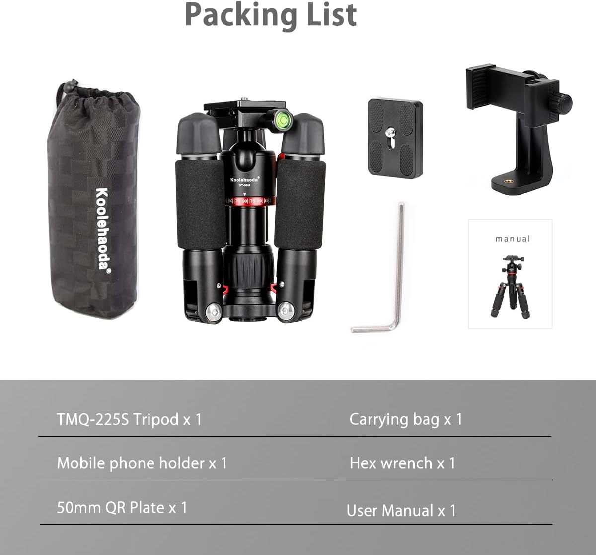Koolehaoda Portable Mini Tripod 18inch/46cm Tabletop Tripod with 360° Low-Profile Ball Head and Two 1/4″ Quick Release Plates for DSLR Camera, Load up to 13.2 Lbs/6kg TMQ-255S