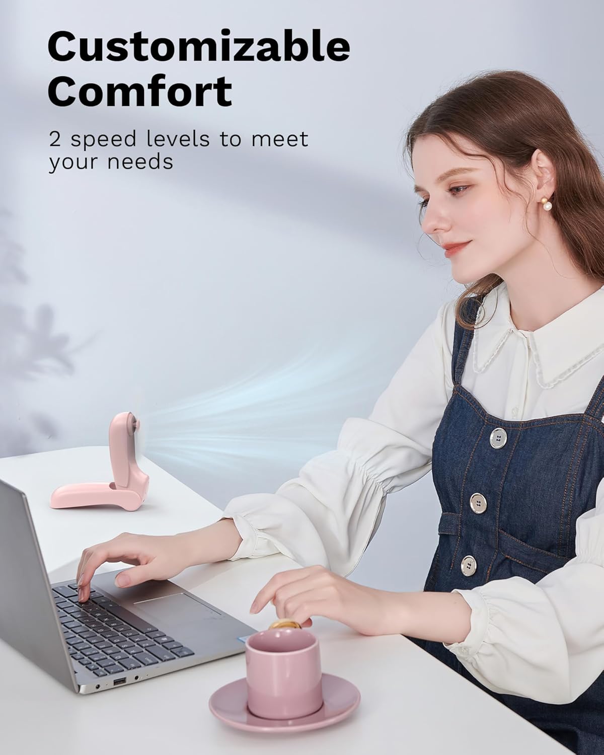 3-Stage Transformable Fan: With its foldable design, you can completely fold it and slip it into any pockects. It’s a handheld fan when 180 folded and a desk fan when 270 folded.