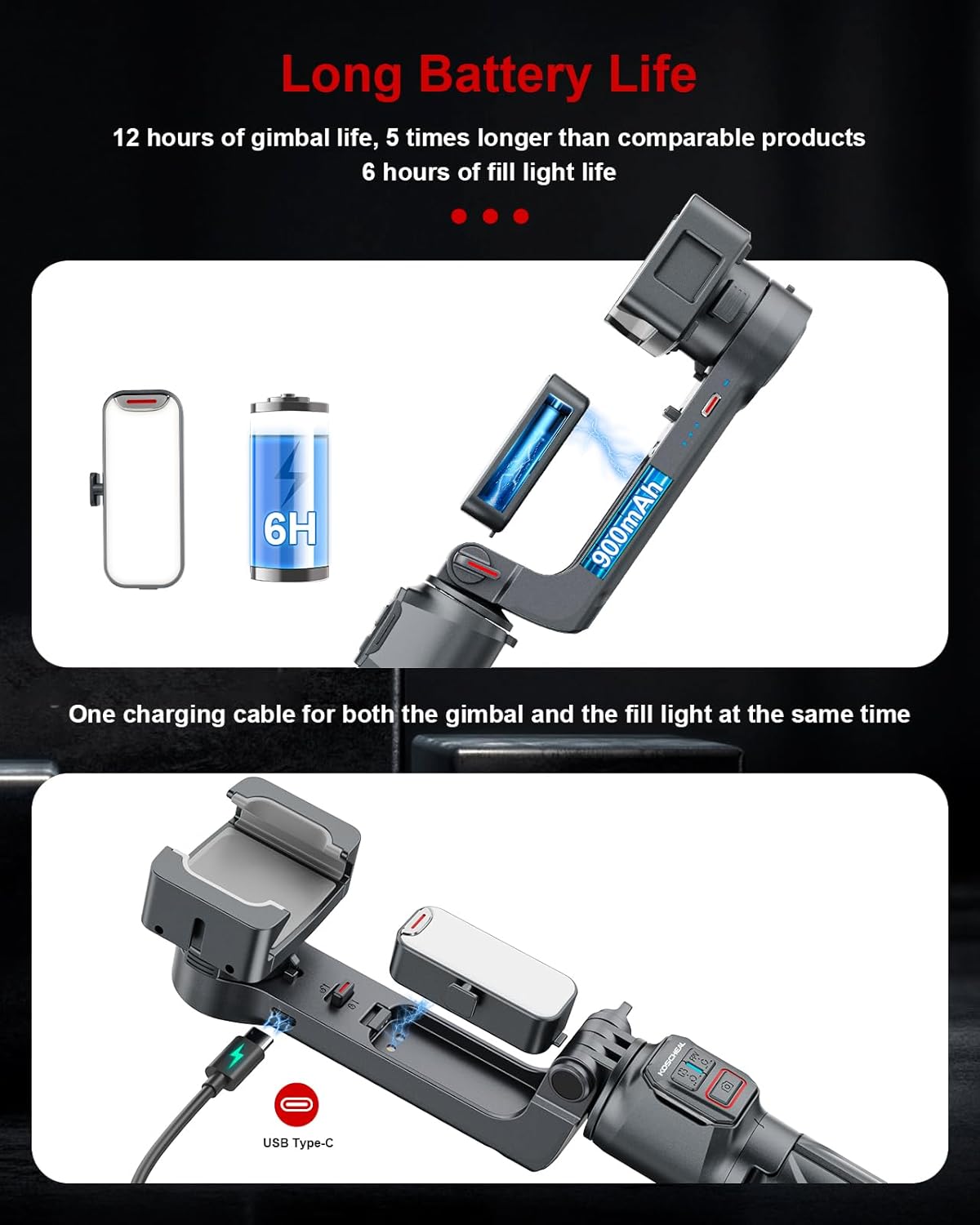 12 reviews for KOSCHEAL Gimbal Stabilizer for Smartphone, Foldable and Portable Phone Gimbal with Fill Light&Wireless Remote, Phone Stabilizer for iPhone & Android, Support 360°of Vertical&Horizontal Rotation