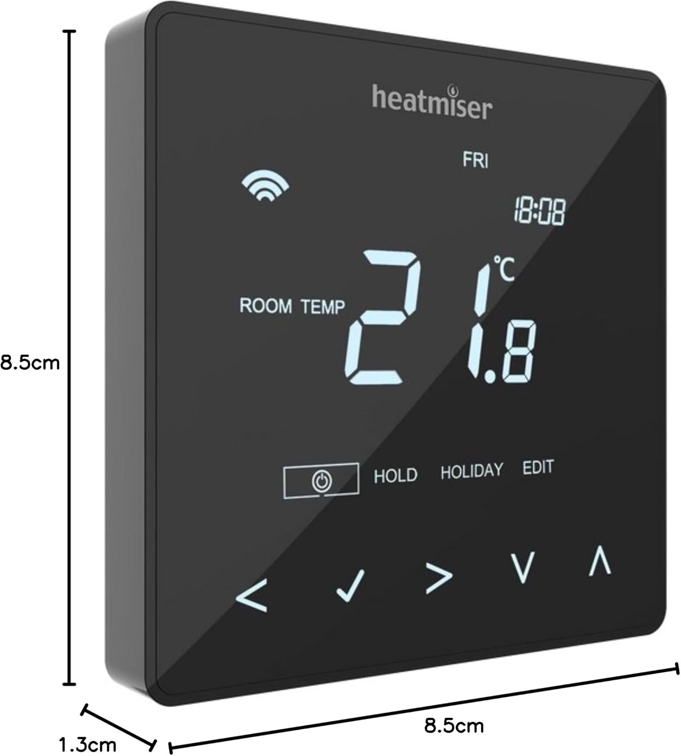 Kudos-Trading – Heatmiser NeoStat WiFi Black a WiFi Thermostat 230v Programmable Thermostat Featuring Illuminated Touch Keys and WiFi Connection for Smart Home Heating Control.