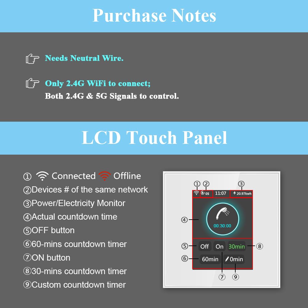 The 4 power buttons correspond to 4 different power on durations to adapt to your different needs. The LCD screen has a countdown indication and will automatically turn off when the time comes, which is safe and convenient.