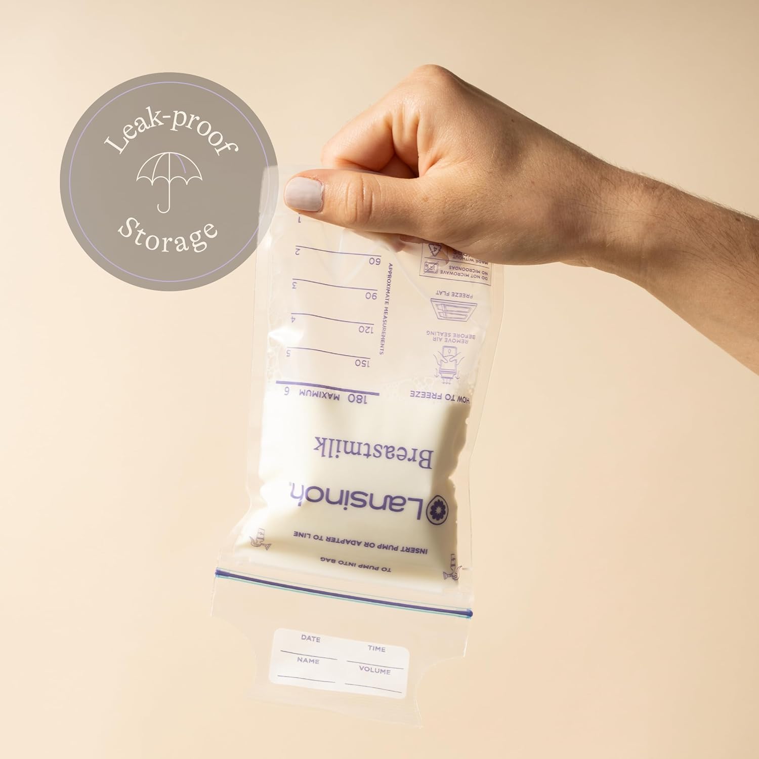 Hold up to 6floz/180ml of breastmilk in each lansinoh milk storage bag