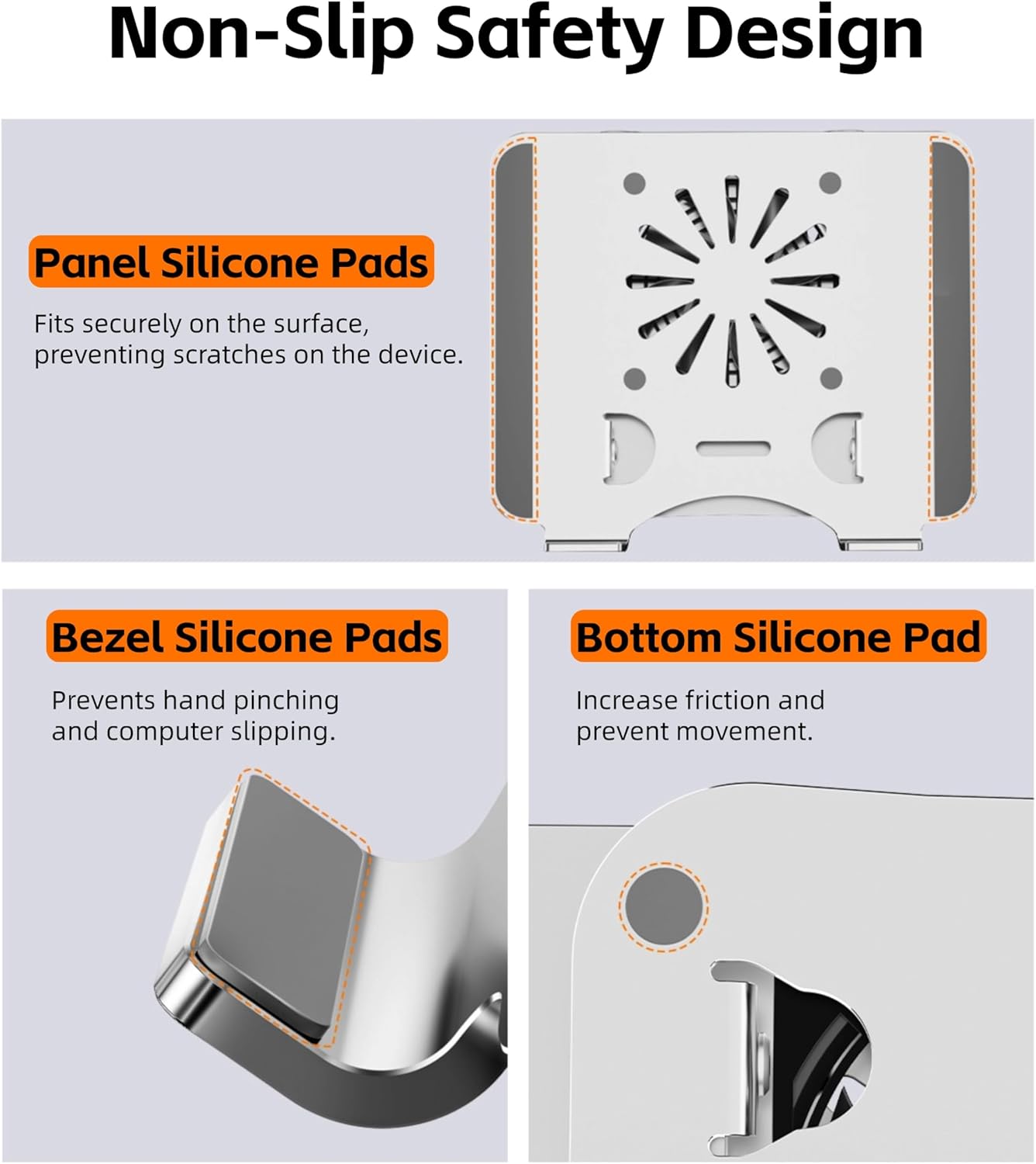 The laptop cooler stand has a built-in USB fan and a large-diameter turbo fan, which keeps the computer running stably with low noise and fast heat dissipation.