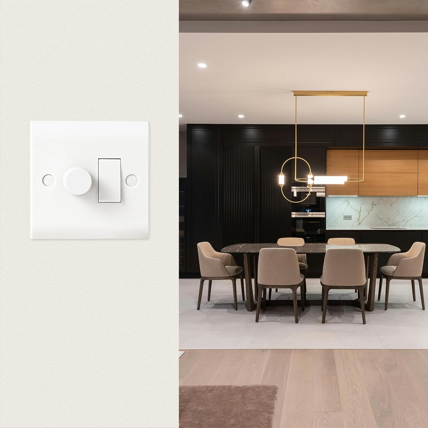 This LED dimmer and rocker switch combo is a fantastic upgrade for any home. Installation was straightforwardâjust make sure to turn off the power first and double-check the wiring. If you’re replacing an old switch, a slim backbox (at least 25mm deep) works best for a neat fit.The dimmer works smoothly, adjusting LED, halogen, and incandescent lights with no flickering. The rocker switch gives a solid click, making it easy to turn lights on/off quickly.Overall for 19.99 at the time of review seems a reasonable price and with this finish its probably the best looking , touch and feel.
