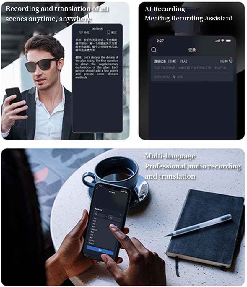 2-in-1 smart glasses: Translator + bluetooth audio:more than ai translation glasses—they’re your wireless earbuds and translator! Stream music, take calls, or transcribe speeches via premium bluetooth. Discreet photography and ai assistant access make them ideal smart glasses for women/men who multitask.