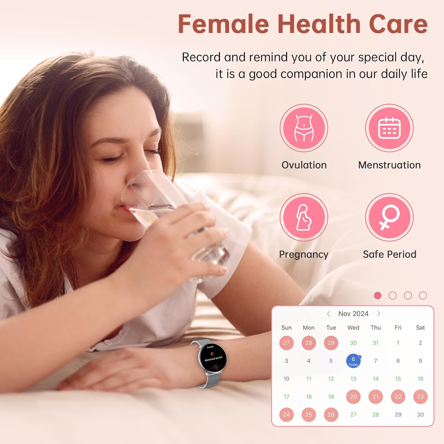 Female Health and More Functions: Women watch Record and remind you of your special day, activity trackers is a good companion in our daily life. ladies smart watches for women More useful functions (AI voice, calculator, photo control, music, games, weather, timer, alarm, stopwatch, sedentary and drink water reminder, brightness, language, find phone, etc.) Tips: AOD clocks and music accelerate battery consumption. smart watch for men android