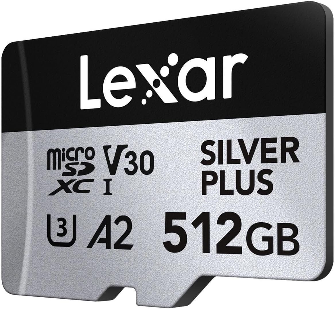 Lexar 512GB Professional Silver Plus Micro SD Card, UHS-I, C10, U3, V30, Full HD & 4K, Up to 205/150 MB/s microSDXC Memory Card, for Videographers, Gamers (LMSSIPL512G-BNANU)