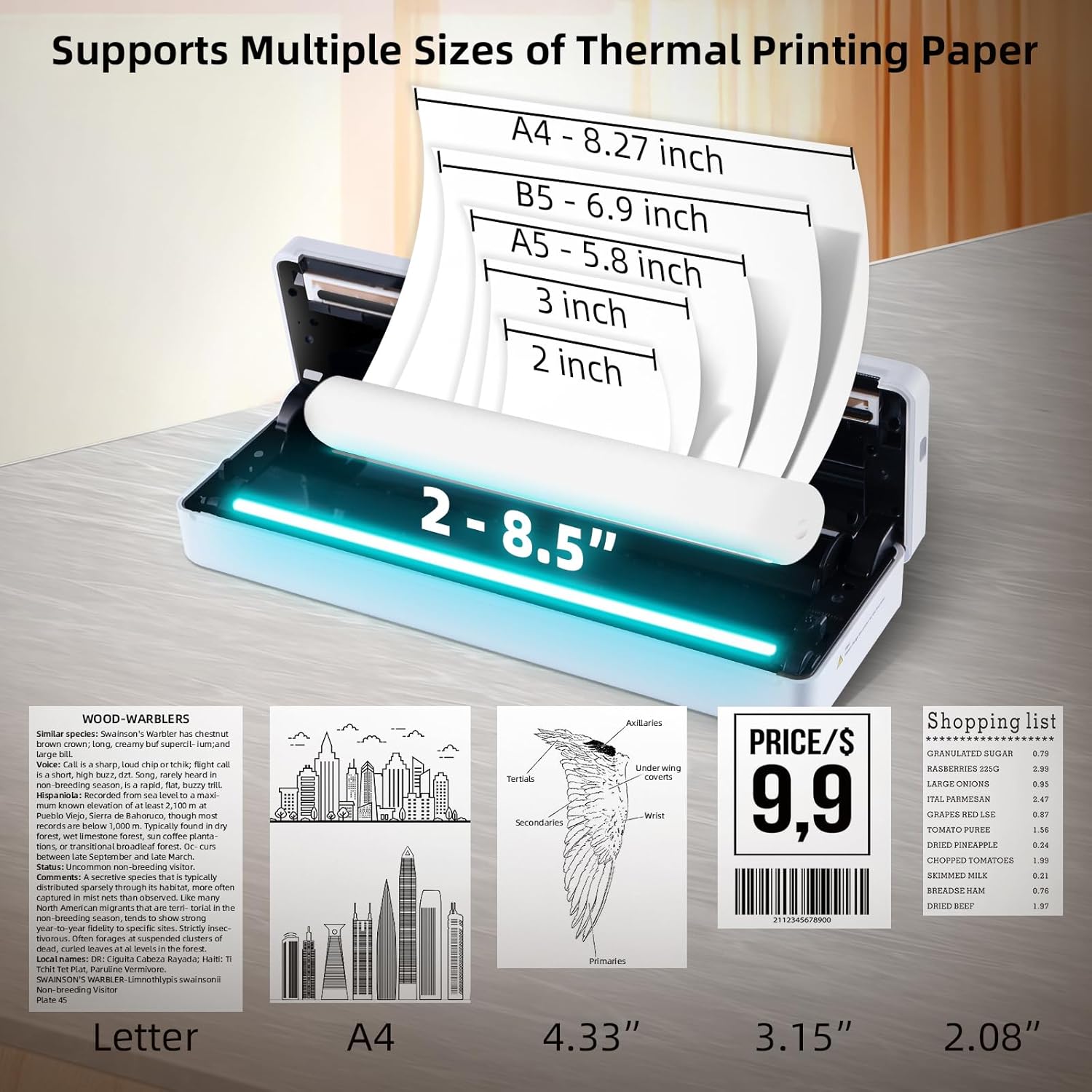 Cost-effective Inkless Printing: Inkless printers provide an economical solution for everyday printing needs, no ink or toner required, with advanced thermal printing technology, you can easily print recipes, forms, letters, assignments, study materials, travel documents, pictures, photos, contracts, DIY, receipts, etc., perfect for home, small office and school use