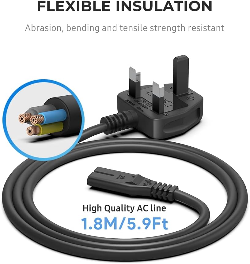 UK 3-Pin Standard Power Cord cable included ( DC charging cable is 1.8 meters long, and AC Power cord cable is 1.2 meters long, totally 3 metres long.)