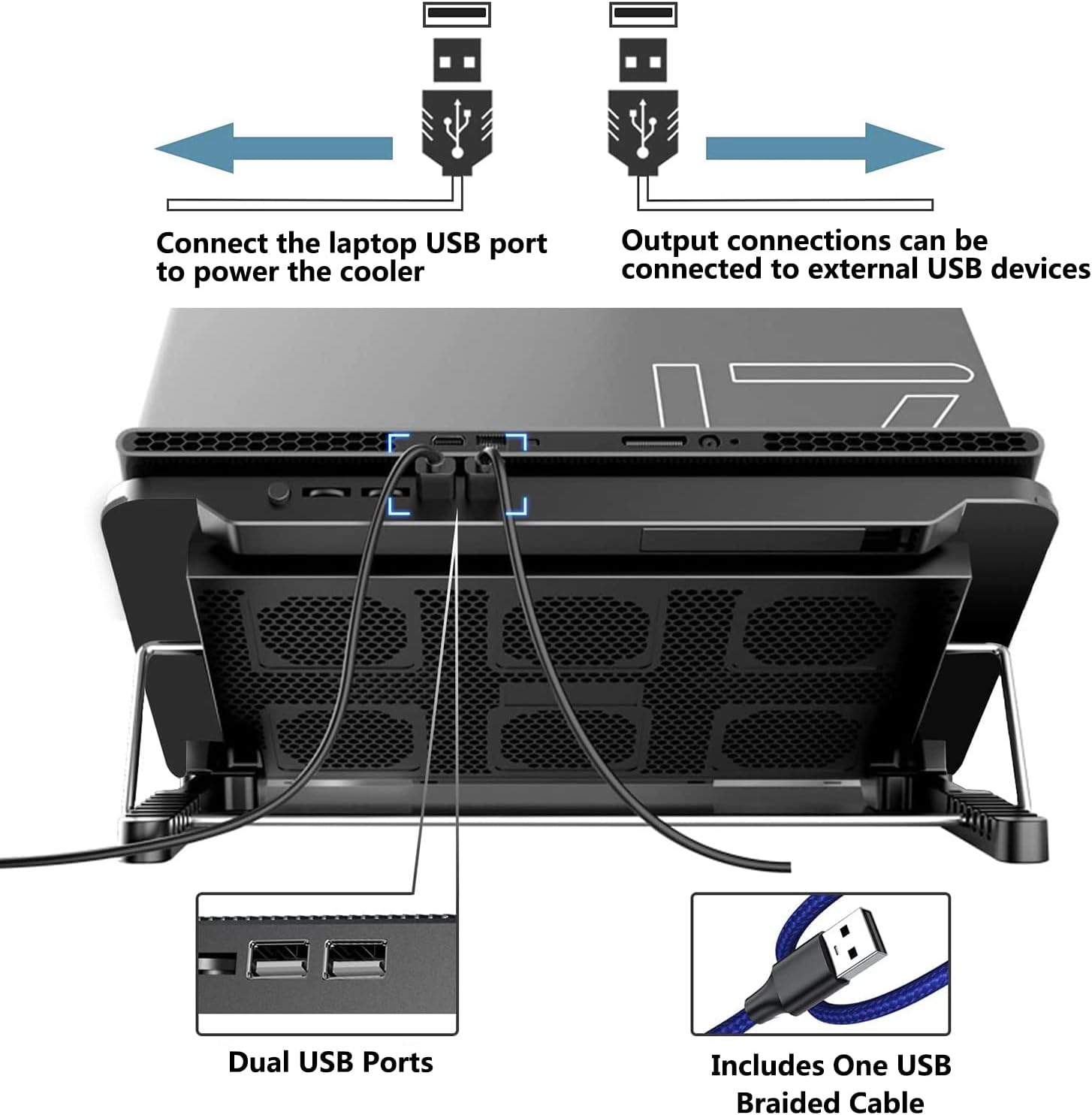 LIANGSTAR Laptop Cooling Pad, Laptop Cooler with 6 Quiet Fans at 2100RPM, Laptop Stand with Phone Holder, 7 Heights Adjustable & USB Powered, suitable for 12-17 Inch, Blue