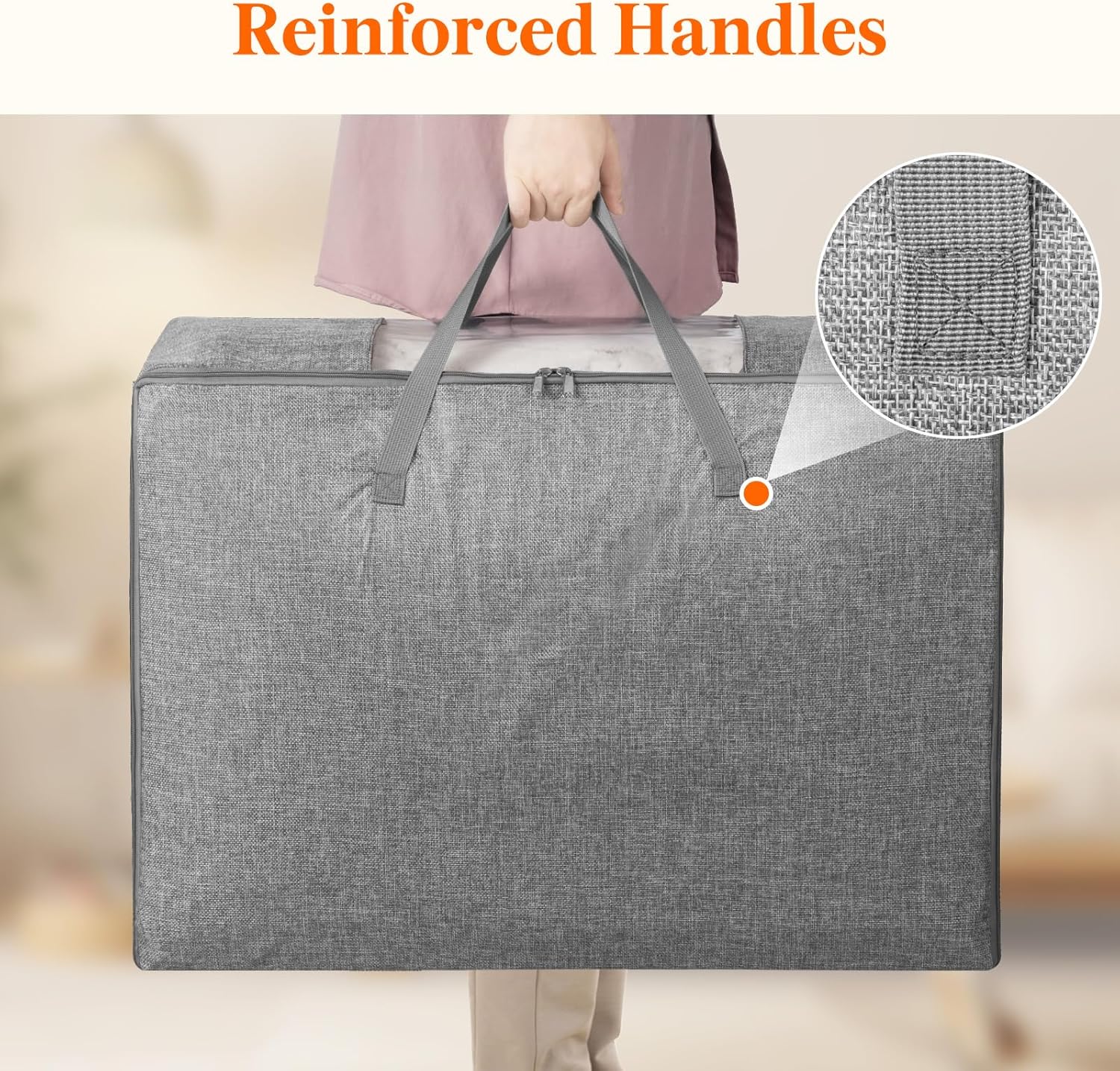 Spacious Capacity: Measuring 27.6″ (70cm) x 11.8″ (30cm) x 19.7″ (50cm), this storage bag offers an impressive 105L capacity, making it an ideal solution for organizing and storing winter blankets, duvets, quilts, sheets, sweaters, and other bulky items