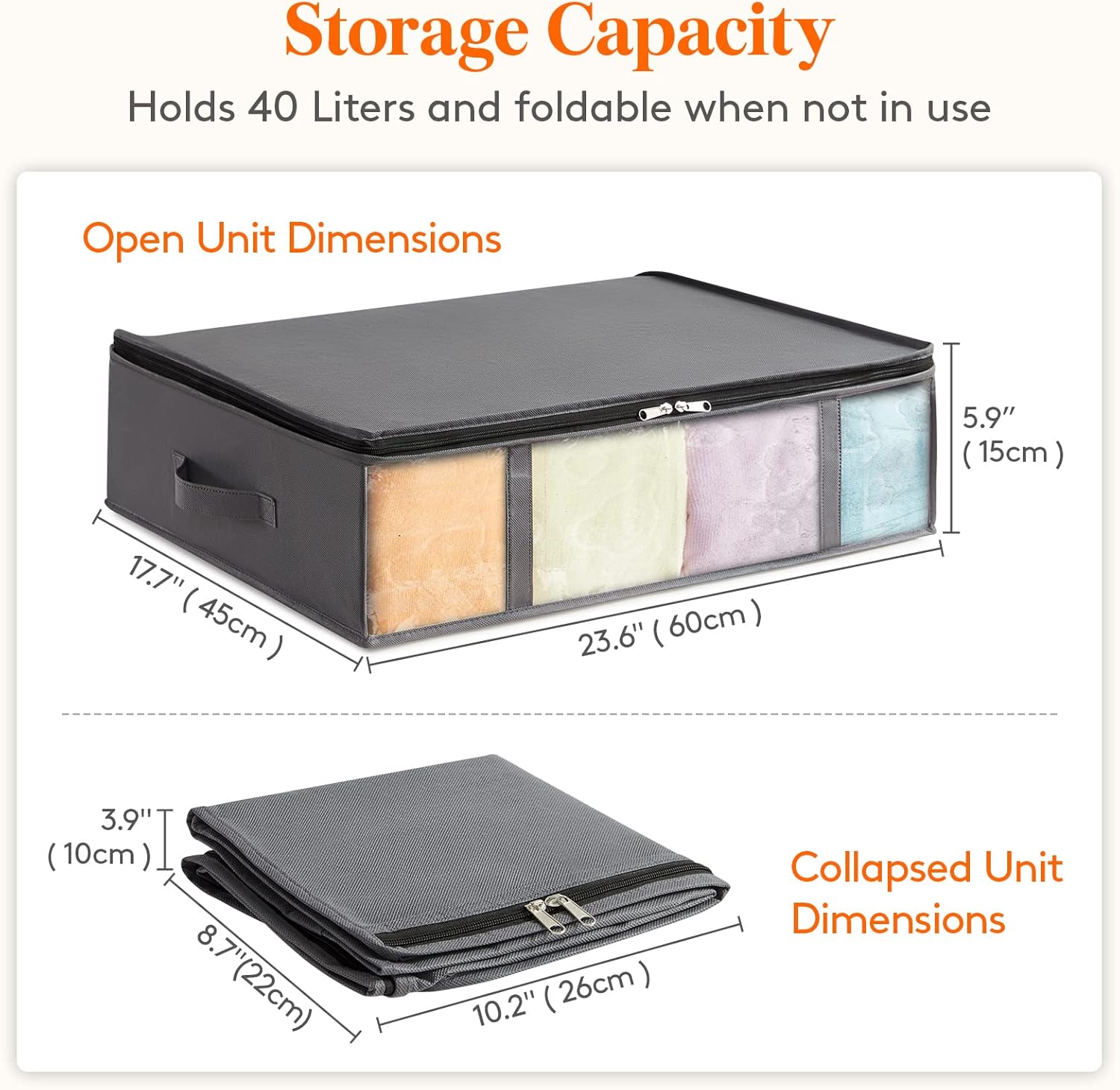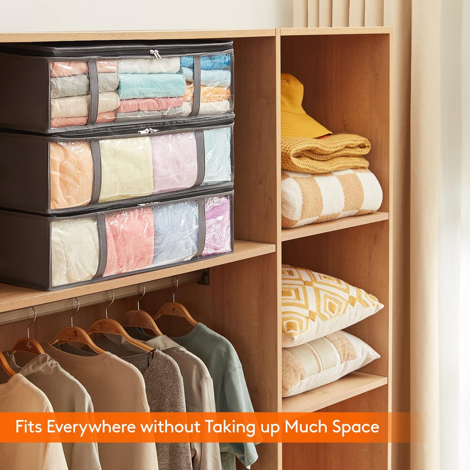 Lifewit 40L Under Bed Storage Containers 3 Pack, Foldable Clothing Storage Bags with Front Clear Window, Closet Organizers and Storage for Towels, Clothes, Blankets, Grey