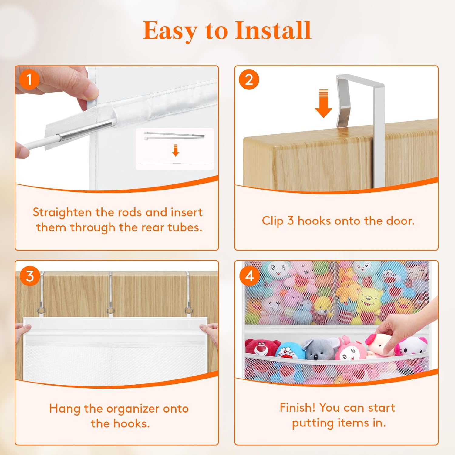 Multi-Purpose: This door hanging storage is an ideal solution for organizing all your child’s plush animals and baby essentials. It can also be used as a bathroom, bedroom or laundry room organizer. A perfect gift for baby showers, Christmas, or housewarming celebrations.