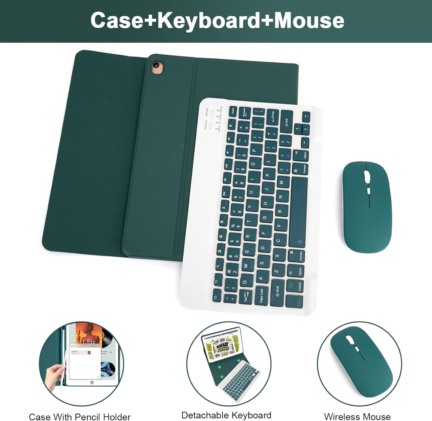 Lively Life Bluetooth Keyboard Case with Mouse for iPad 10.2 9th 2021/8th 2020/7th Generation 2019, iPad Air 3 2019, iPad Pro 10.5 2017, Built-in Pen Holder, Detachable Wireless Keyboard – Dark Green