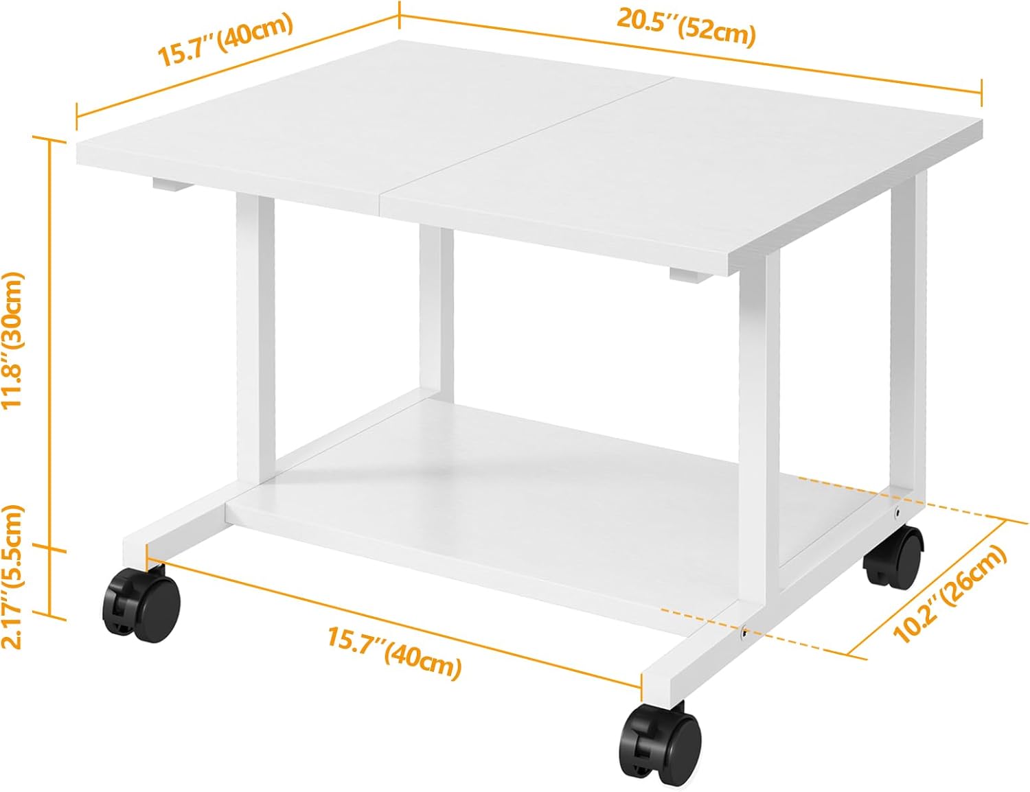 11 reviews for Livofloral Under Desk Printer Stand, 52 x 40 x 30cm Printer Cart with Wheels, 2 Tier Mobile Printer Table for Home Office, Large Printer Stand with Storage, Printer Stand for Mini Fridge, White