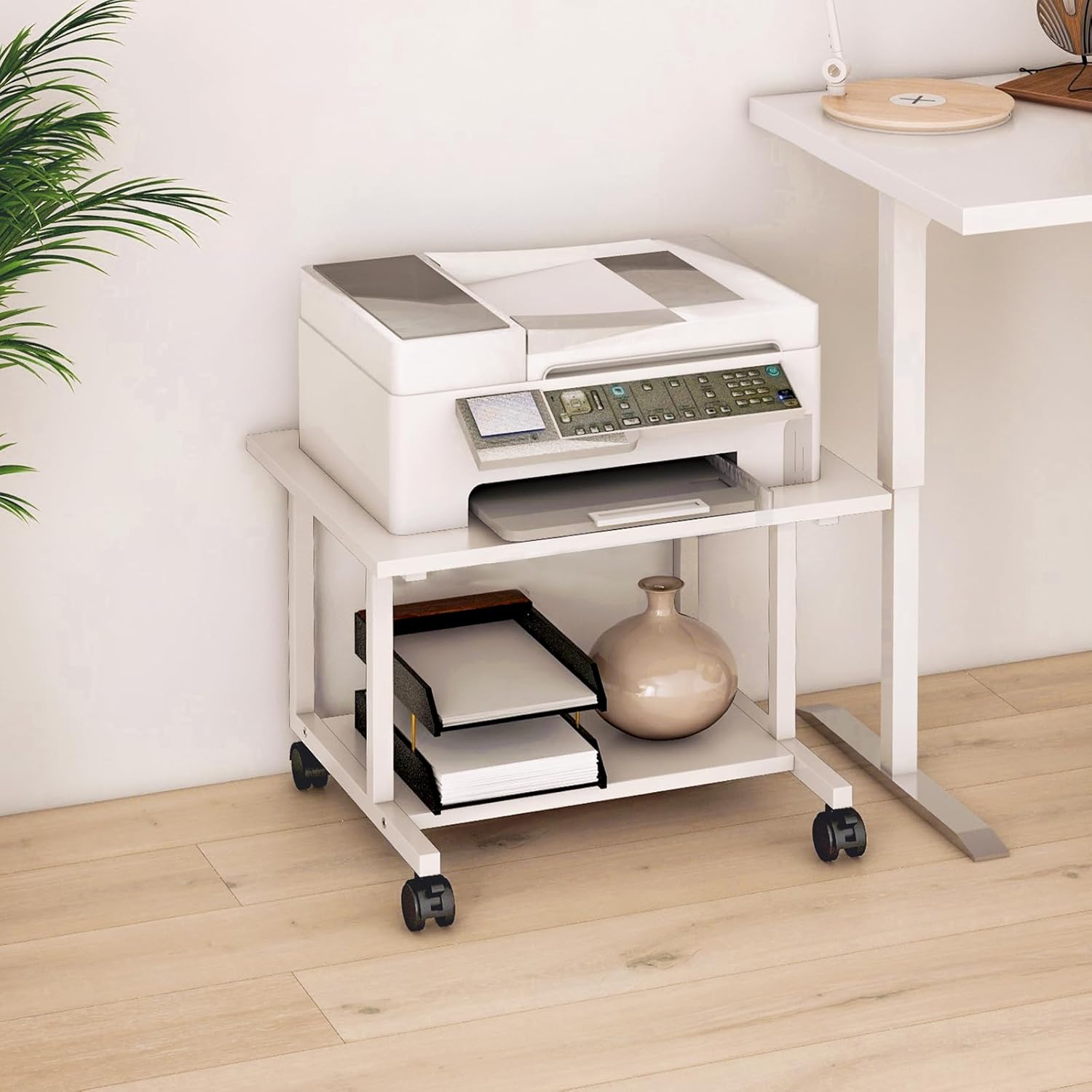 Multiple Uses: This printer table for home office doubles as a stand for printers and fax machines, and easily transitions into kitchen storage shelf, sofa side table or bedside table; An optimal storage asset for office, kitchen, living room, or bedroom