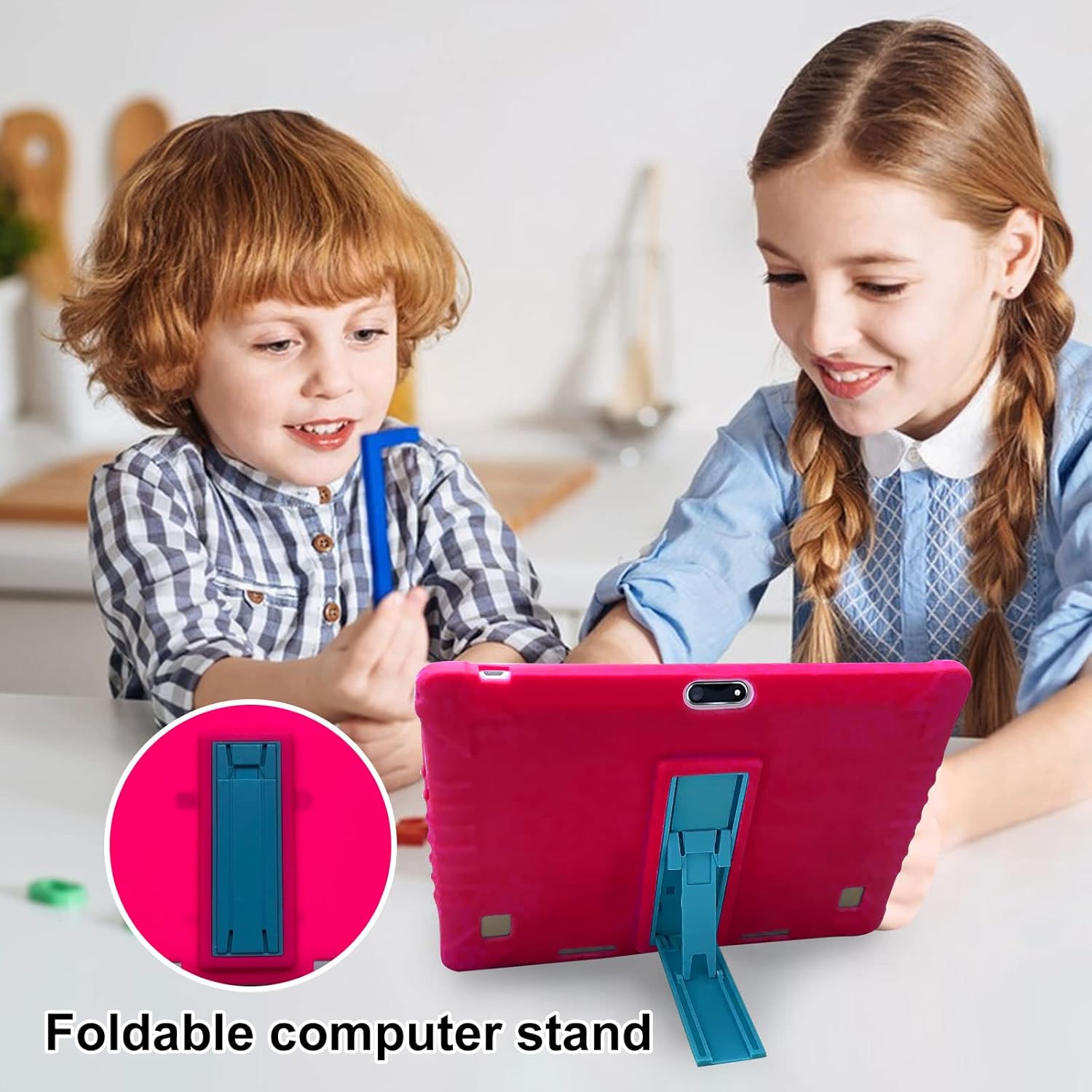 3.❥ Specially designed tablet case ❥–The case comes with a stand which can free kids from holding the tablet. Durable, lightweight case to protect against drops and bumps caused by kids at play. Made of high quality soft silicone material, the bundled case is environment-friendly and harmless to health. No need to worry about any potential harms. The soft material brings soft and smooth touch experience.
