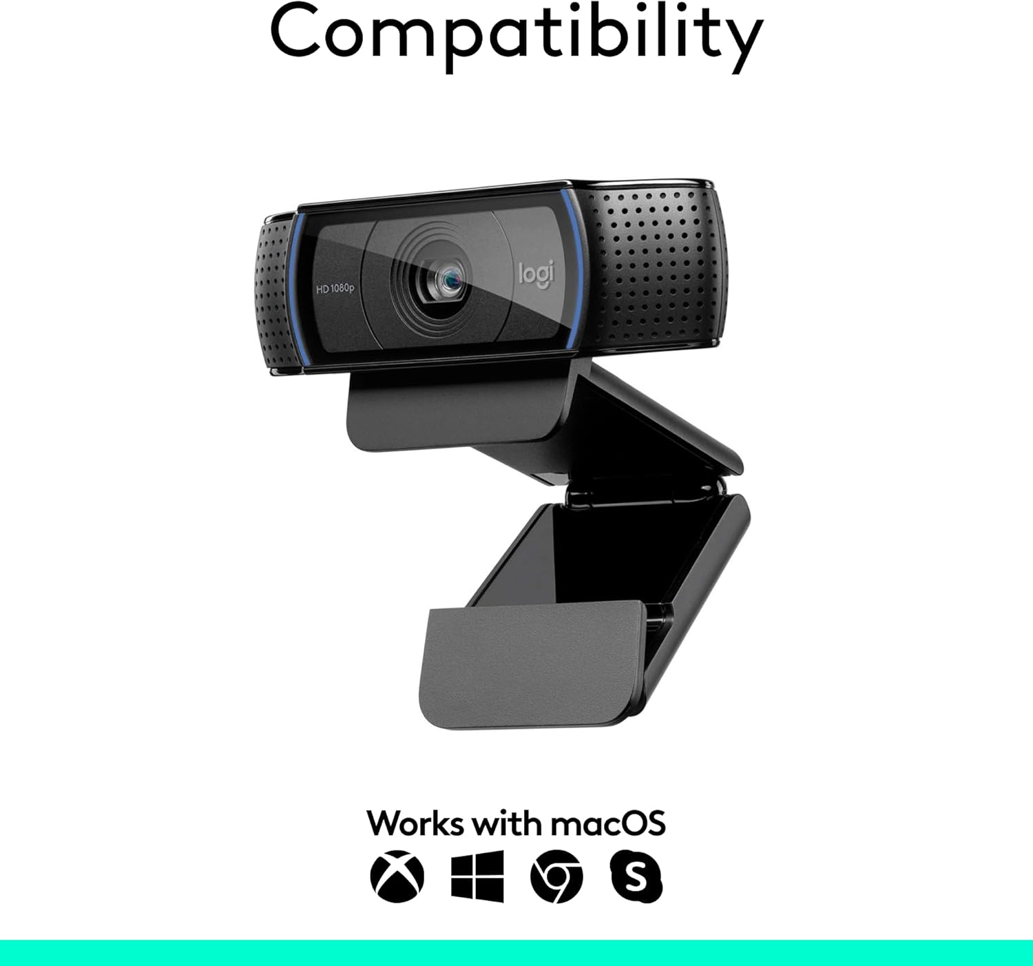 Logitech C920 HD Pro Webcam, Streaming, Full HD 1080p/30fps Video Calling, Clear Stereo Audio, HD Light Correction, Works with Skype, Zoom, FaceTime, Hangouts, PC/Mac/Laptop/Macbook/Tablet – Black