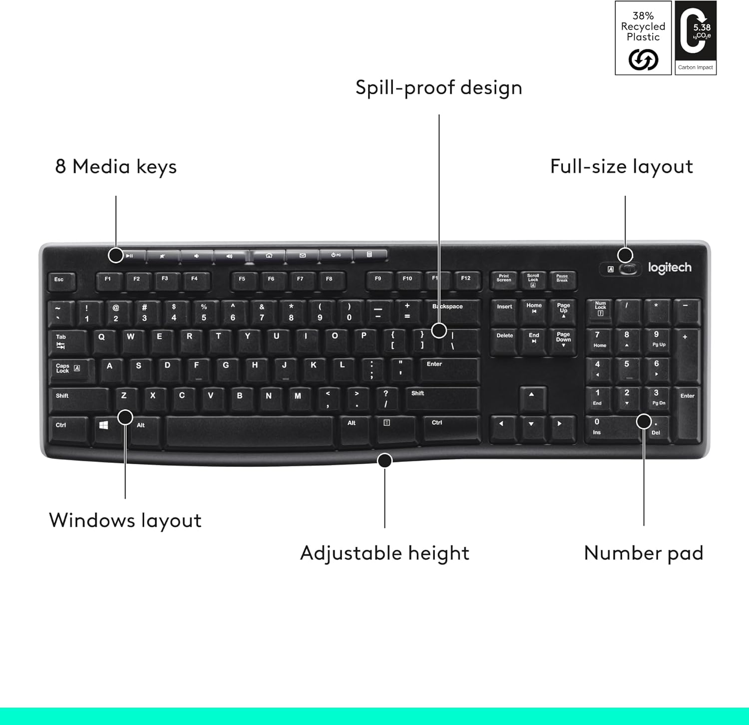 Plastic parts in K270 include 38% certified post-consumer recycled plastic*