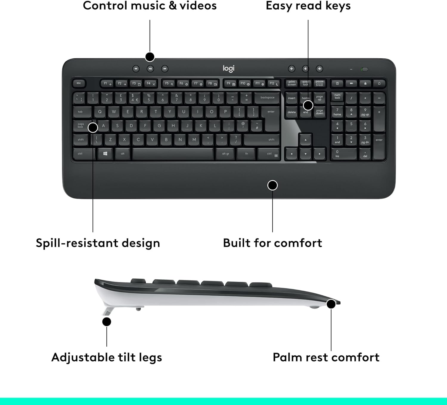 Logitech MK540 Advanced Wireless Keyboard and Mouse Combo for Windows, 2.4 GHz Unifying USB-Receiver, Multimedia Hotkeys, 3-Year Battery Life, for PC, Laptop, QWERTY UK English Layout – Black