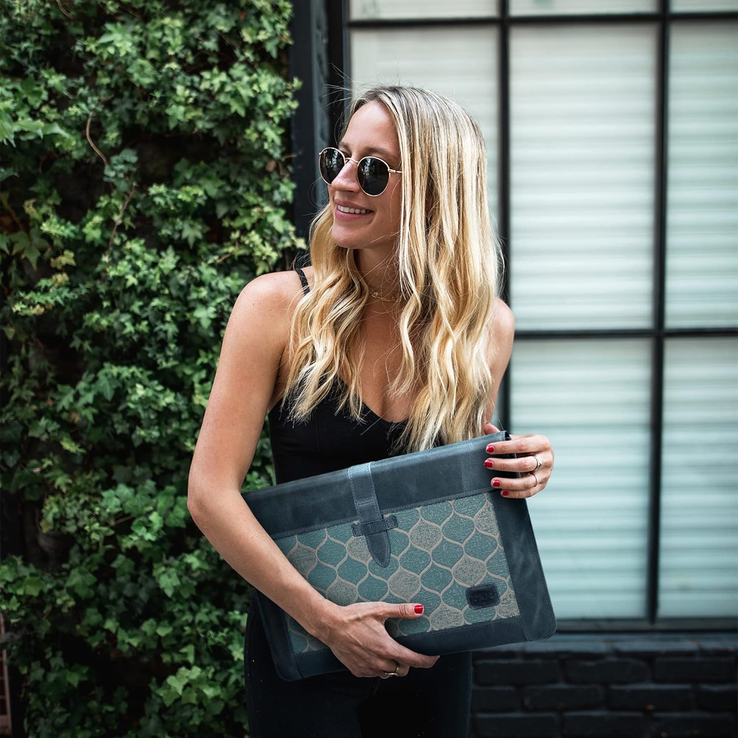 STYLISH – The Londo Genuine Leather Macbook Bag comes in three varieties. Blue drop and colorful mosaic patterns are woven jacquard linen polyester, the ethnic brown variety is woven linen. Choose a style that best fits your personality.