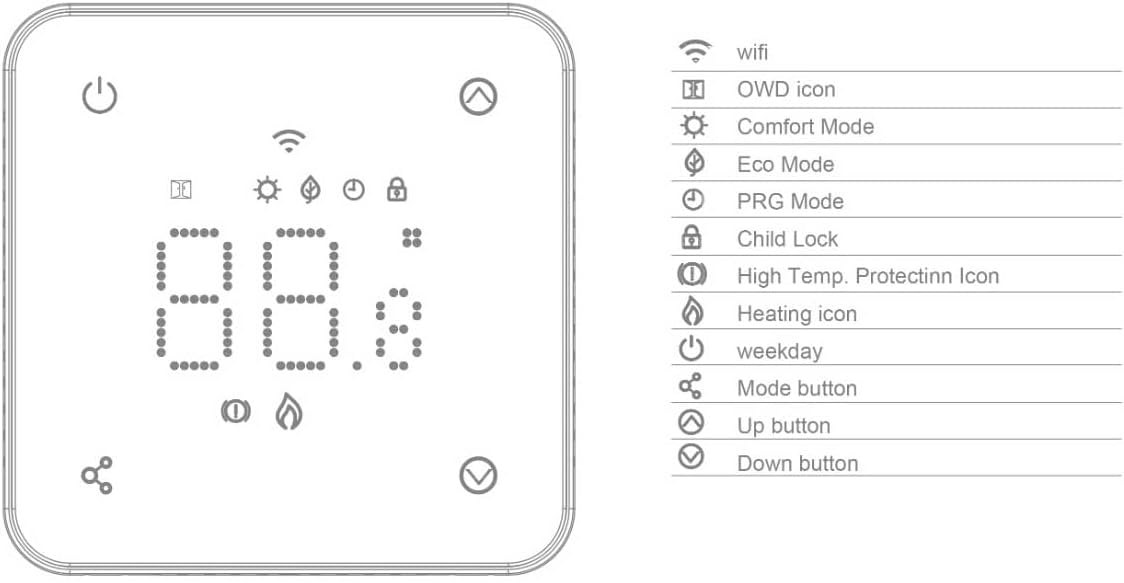 Works well and does what it’s supposed to do. But I’ve tried several variations of these and they all have a common issue where by the internal temp sensor starts to decrease when turned on and then when off starts to increase to the correct temperature value. Not sure what’s going on. Would be useful to know the temperature of the room as well as the floor.