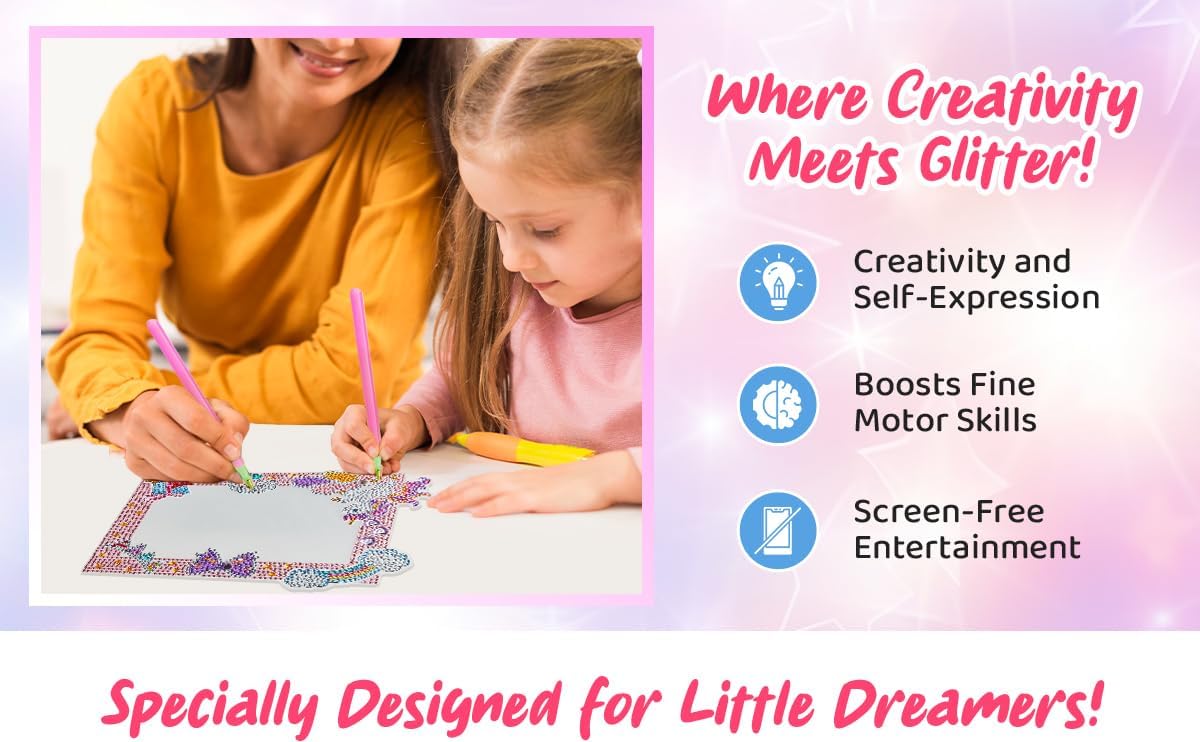 Easy & Fun DIY Photo Frame: Simple to complete, this kit includes everything needed to create a sparkling 4×6 inch photo frame, transforming a craft activity into a cherished room decor piece or a heartfelt handmade unicorn gifts for girls