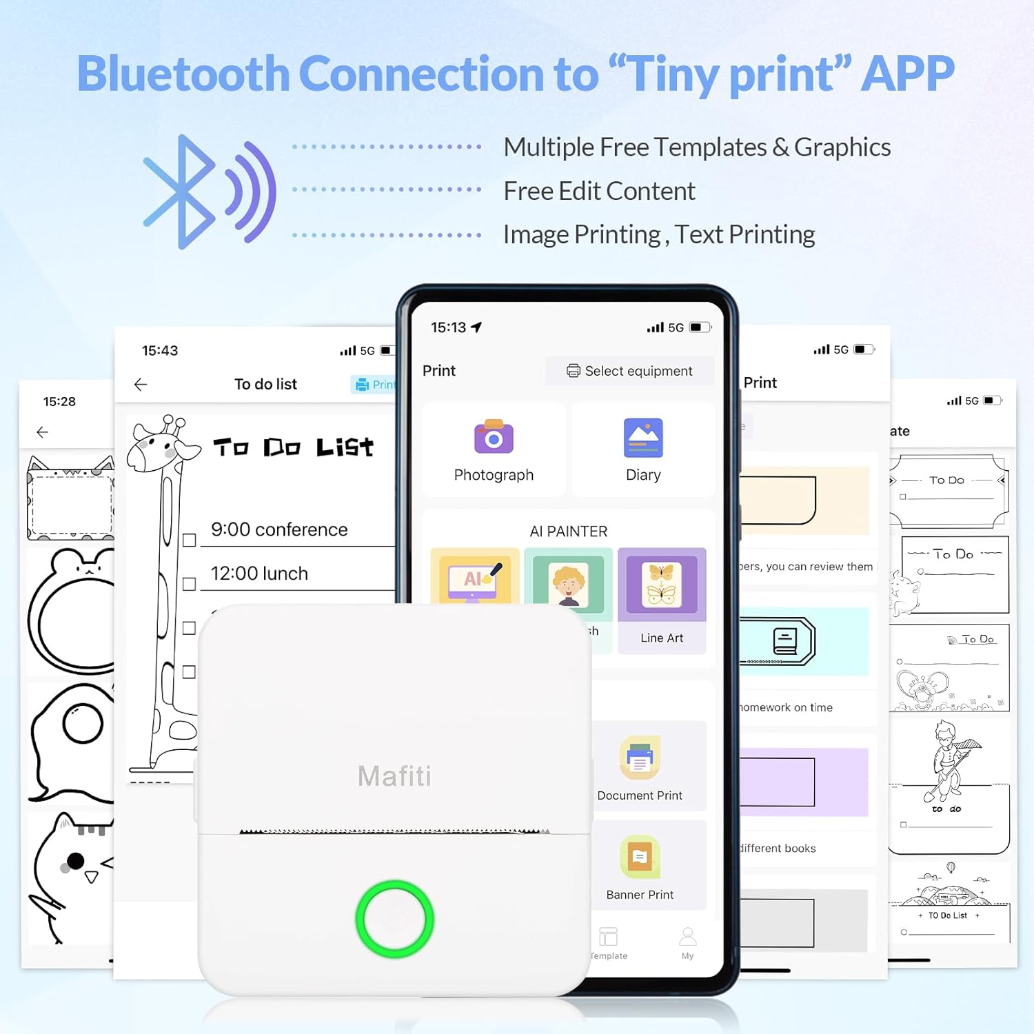 【𝐁𝐥𝐮𝐞𝐭𝐨𝐨𝐭𝐡 𝐓𝐡𝐞𝐫𝐦𝐚𝐥 𝐏𝐫𝐢𝐧𝐭𝐞𝐫】 Bluetooth 4.0 connection, supports most of Android and IOS. Mafiti mini printer is an inkless printer, you don’t need to buy any ink or toner. If there is a printing blank phenomenon, it is because the paper is placed upside down and needs to be reversed in order to print correctly.