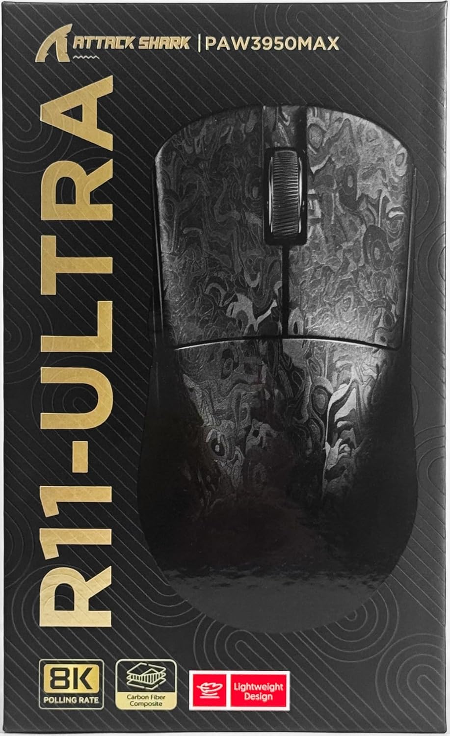 MAMBASNAKE x ATTACK SHARK R11ULTRA Carbon Fiber Wireless Gaming Mouse, 8000Hz, 49g SUPERLIGHT, 42000DPI, PAW3950MAX Sensor, Nordic 52840 Chip, Nano-Metal Ice Coating, 20000 FPS, BT/2.4G/USB-C Mice