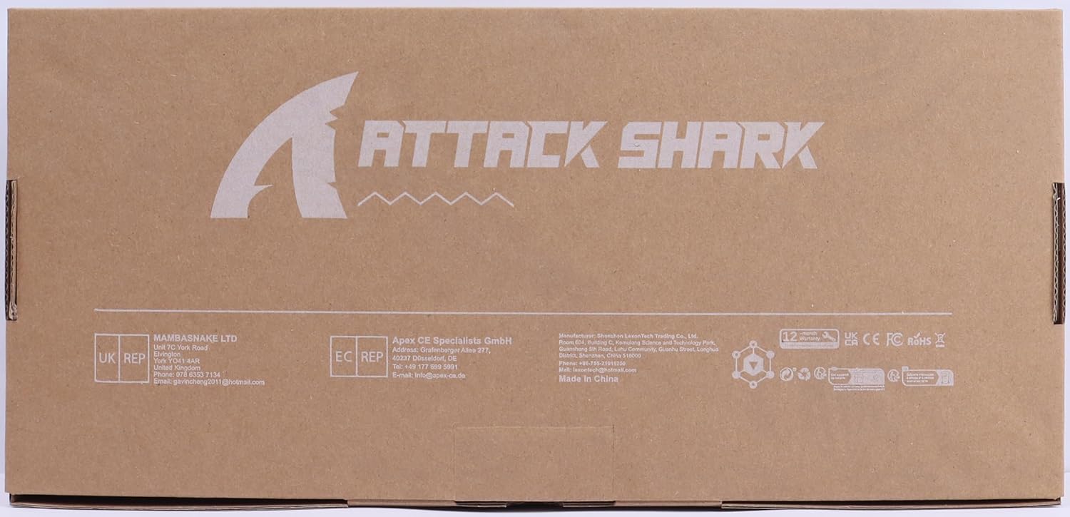 The board and mouse both arrived in their own retail packaging that was combined and packed into a larger Attack Shark cardboard box that kept them together and well protected. As usual for any products from Mambasnake or Attack Shark, both parts were packed into professional looking boxes with the expected cables and a helpful set of multi-language instructions.The overall appearance of the board and mouse is great, everything is produced to an excellent standard with no blemishes to be found. It also has a nice looking clear anodised aluminium plate which does a good job of reflecting the light from the leds up from the bottom of the keycaps. It’s also got a surprising heft to it so it’s safe to assume they’ve added something to the case to make it heavier and adjust the sound profile. I wasn’t super sure I’d like the design on the doubleshot keycaps, but it’s grown on me as I’ve used the board. The only thing to be aware of with the keycaps is that they’re essentially blank keycaps unless the backlights are on, which may bother some people, though I don’t particularly mind.The board has Outemu branded switches which is reassuring, though I haven’t been able to find the exact switch used anywhere online. Visually they look similar to the Ocean Silent switches from Outemu if you go by the stem and shell colours, but they’re significantly different switches once you look closer. Maybe they’re specifically made for Attack Shark for now and we’ll see the loose versions of the switches in the future. But at the very least the switches do check out as magnetic and are as described, they’re a relatively lightweight linear switch. They feel great to game or type on and if you’re a fan of lightweight, quiet and smooth linear switches you’ll be right at home, and that’s before you mess around with the options in the software.As for the mouse it’s pretty good and is better than I expected, I’d kinda written it off as a cheap inclusion to justify upping the cost of the combo, but it’s genuinely a great mouse. I’m super happy with my current Deathadder V3 because of the special sauce coating Razer have on it, but if anything ever happens to that mouse I’d have no issues swapping to the X11 from Attack Shark.The fact that you’ve got the options of wired, Bluetooth, and 2.4ghz make both the mouse and keyboard fantastic for gamers on both sides of the fence when it comes to wired vs wireless. The 2.4ghz seems to be very well implemented & robust, it’s indistinguishable from wired and I haven’t had any dropouts or strangeness due to interference etc.The value for money is hard to fault if you’re specifically in need of both a mouse and a board, especially once you knock off the 15% with the voucher, bringing it down to £84.99. A hall effect keyboard of this size with BT & 2.4ghz will easily set you back £60-£70 on its own, so getting a lightweight wireless mouse with some decent specs for an extra £15-£25 is a good deal if you need both at once. Though with that said, even if you just want the X65PRO HE, that’s £78 on its own, so it’s worth throwing them the extra £7 just to get the mouse as a spare.