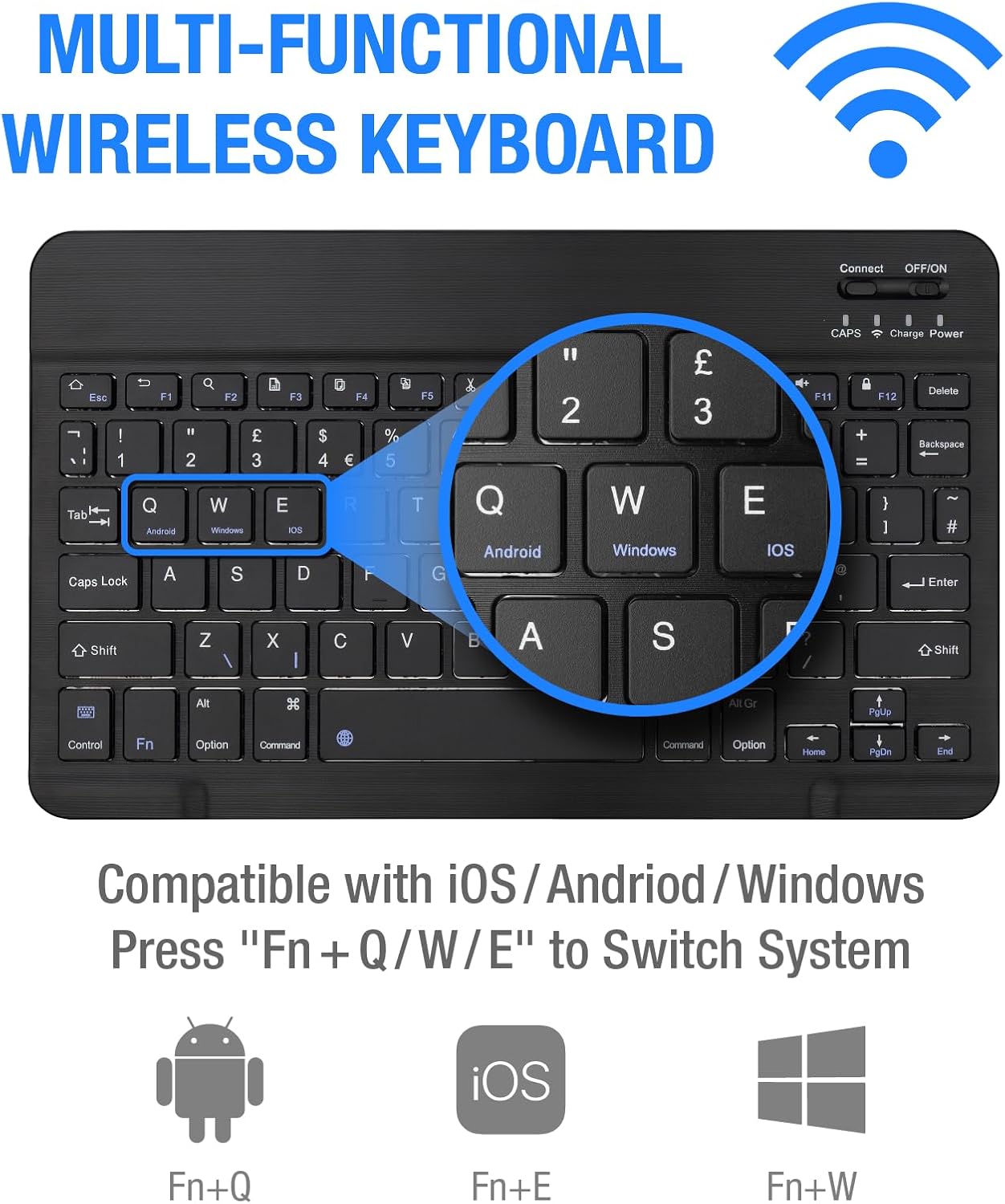Support 3 System&Full Shortcut Keys: – The magnetic wireless keyboard can be removed from the case freely. Compatible with iOS, Android, Windows. Just press Fn and corresponding keys(QWE) to change the keyboard system. Hot keys Customized for iPads, Full Shortcut Keys give you a more efficient way to use your keyboard.
