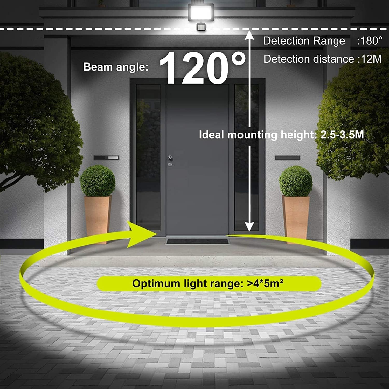 [IP66 waterproof]: The outdoor flood light is built with nano-patch material, strong impact resistance, the protection class of led floodlight is IP66, of infrared sensor is IP65, the LED floodlight is protected against moisture and dust, stable and durable. Fully sealed protection design of the sensor ensure the light work properly no matter rain, snow, heat or cold environment, perfectly as a outdoor lighting for the safety of your home