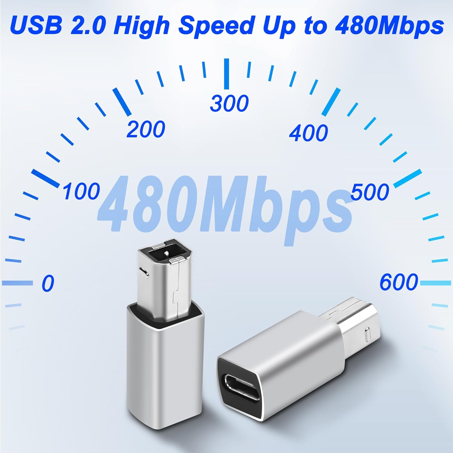 High Speed Transfer: MEIRIYFA USB C to USB B Printer Cable Adapter, Up to 480Mbps transfers speed for USB-C adapter, the USB Type B cable is backwards compliant with full-speed USB 1.1 (12 Mbps) and low-speed USB 1.0 (1.5 Mbps). Compared with WIFI connection, this USB B Cable provides a more stable data transmission and offer a more efficient work way for you.