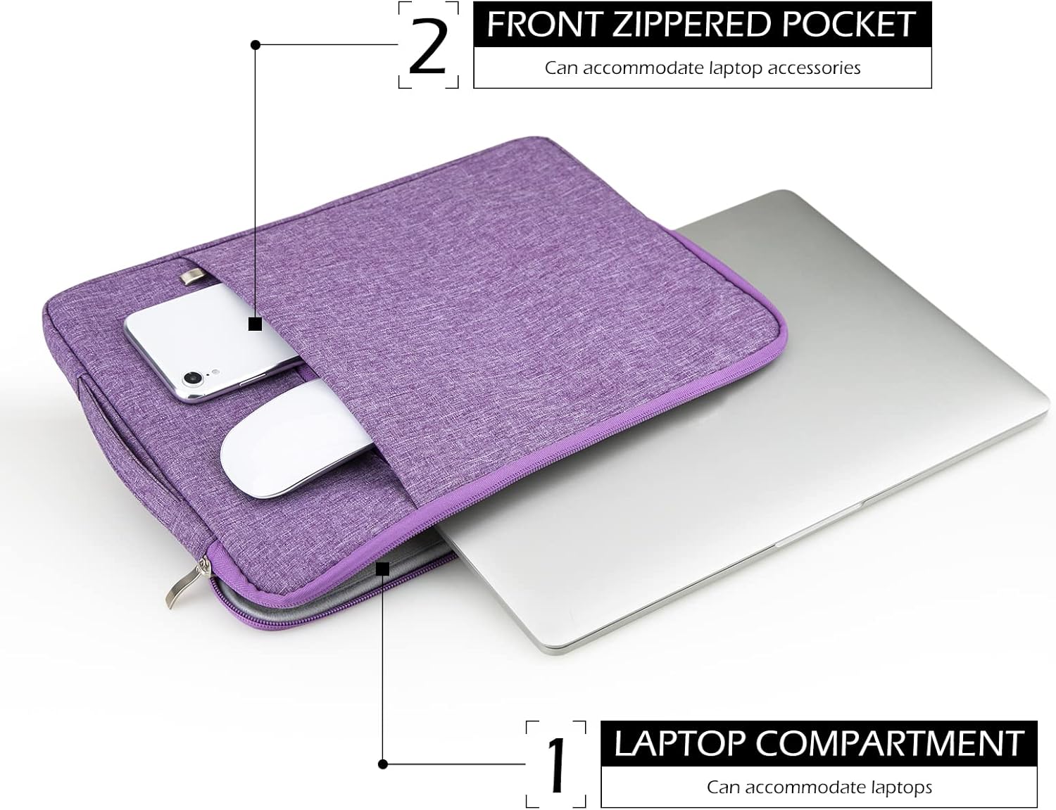 MicaYoung 11 Inch Laptop Sleeve Case Slim Waterproof Carrying Bag with Front Pocket Retractable Handle for 11.6 Inch MacBook Air Chromebook, Purple