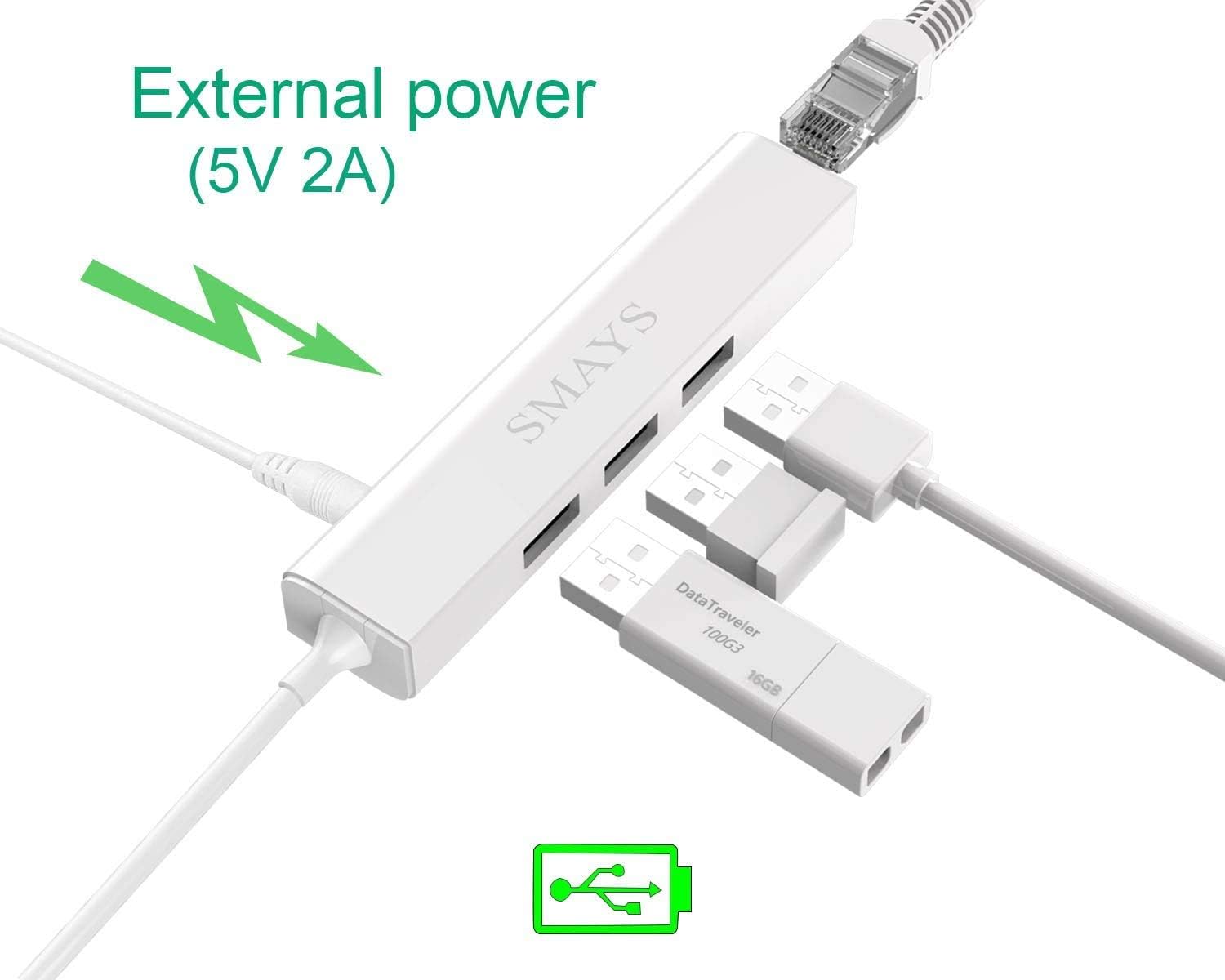 Micro Usb to Ethernet Lan Adapter With 3 Ports Usb Hub For Google Nexus Player,Tv Stick Streaming Device,Raspberry Pi Zero – White