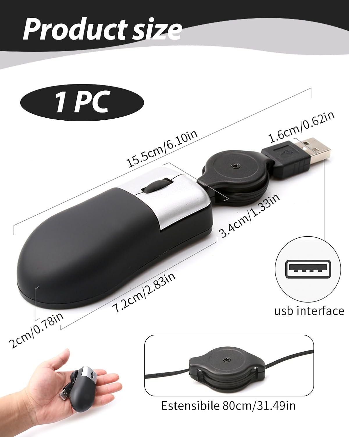Tangle-Free Retractable USB Cord This retractable mouse can let you say goodbye to messy cables. The integrated 80cm retractable USB cord easily extends and retracts, giving you the flexibility to adjust length based on your workspace. It keeps your desk clutter-free while being incredibly easy to store when not in use.