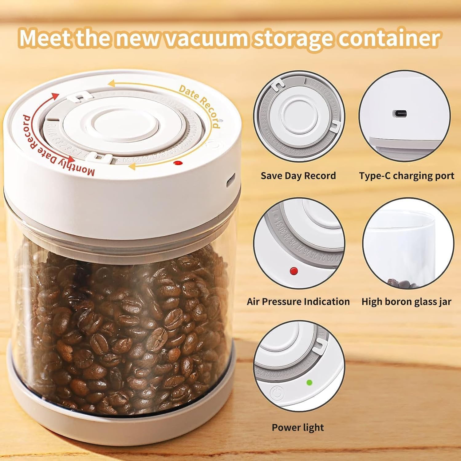 【SMART & LONG-LASTING FRESHNESS】This electric vacuum container continuously maintains low pressure & less oxygen in the jar, keeping food 5x longer dryness & freshness than traditional vacuum sealed containers / non-vacuum storage methods, which makes planning meals become an joy. When it is used as a coffee bean storage tank, brewing a cup of authentic coffee will no longer be a problem.