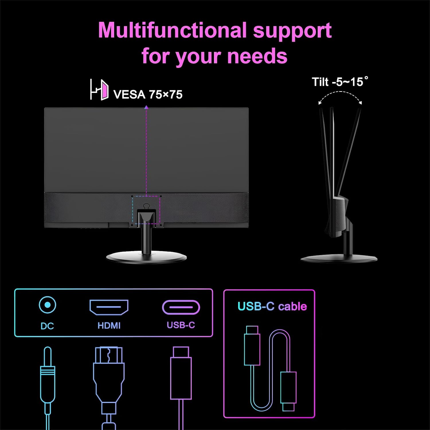 Versatile Connectivity Options – Featuring HDMI 1.4 and Type-C ports, this monitor offers flexible connectivity options to connect a wide range of devices including laptops, desktops, and even the latest gaming consoles like PS5. The USBC port also supports power delivery, simplifying your setup and reducing cable clutter.