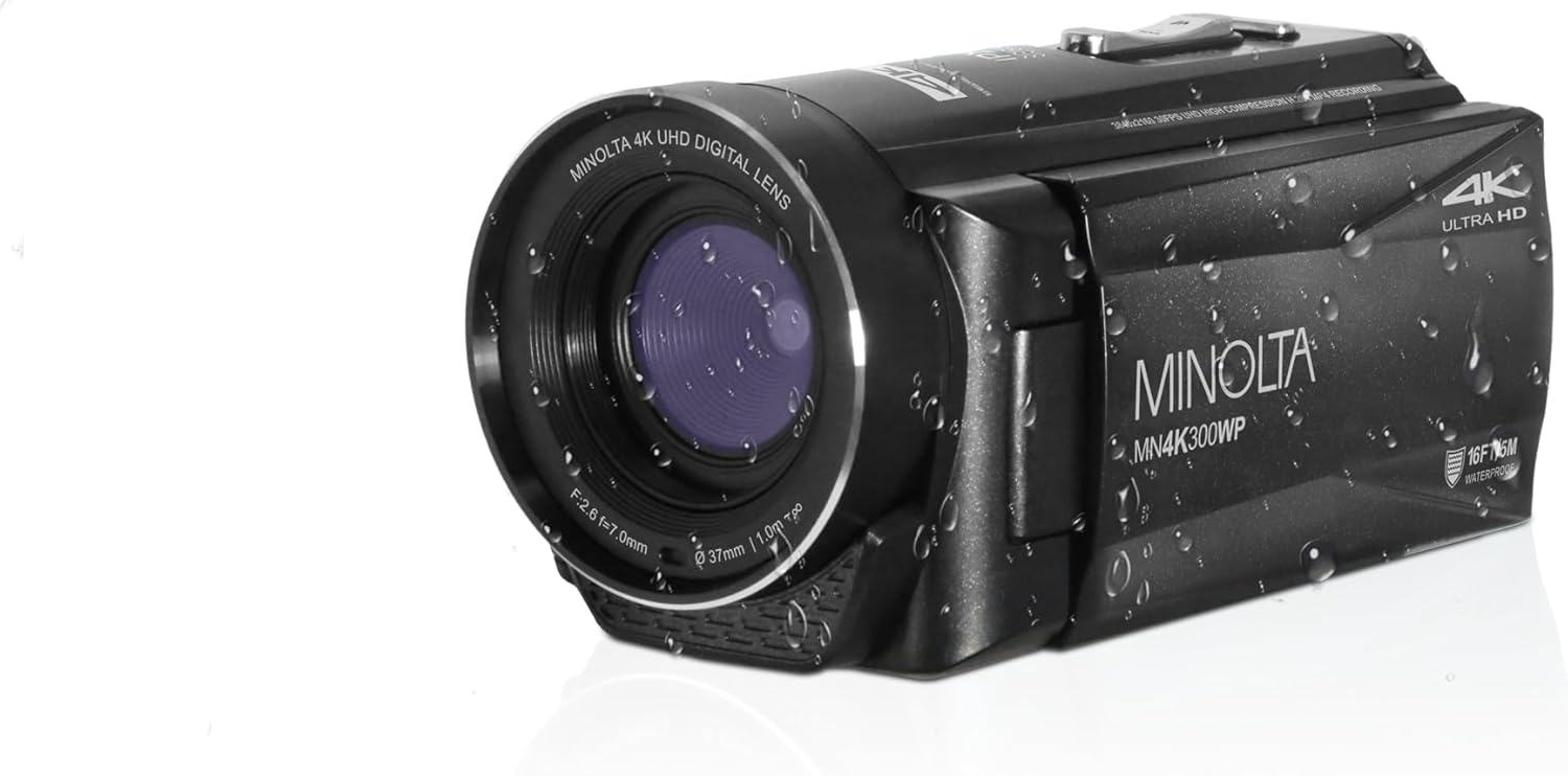 Minolta Waterproof Camcorder – 4K Ultra HD Video, 56MP Photos, 18X Zoom, 3-inch LCD Screen, Time Lapse, Loop Recording, Photo Burst, Anti-Shake, Webcam Mode, HDMI/USB (Black)