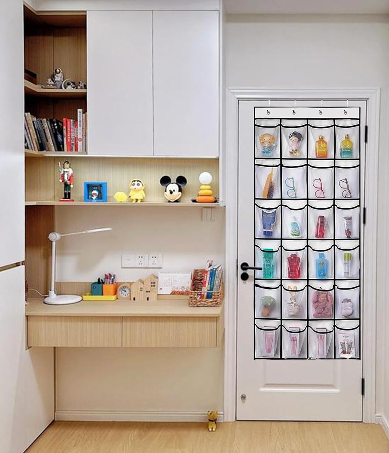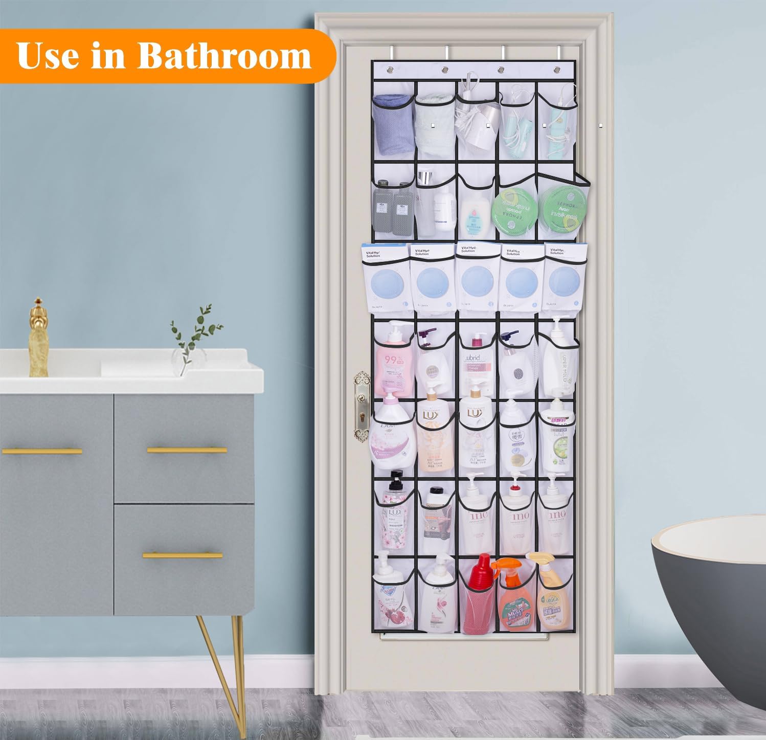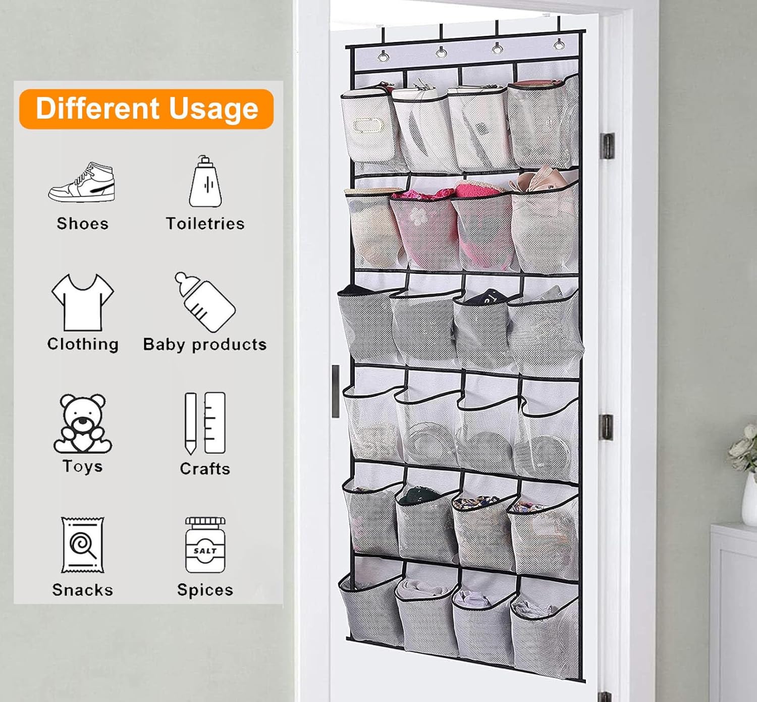 Back of door shoe holder shelf with 24 roomy clear see through mesh pockets organizer store up to 12 pairs of shoes