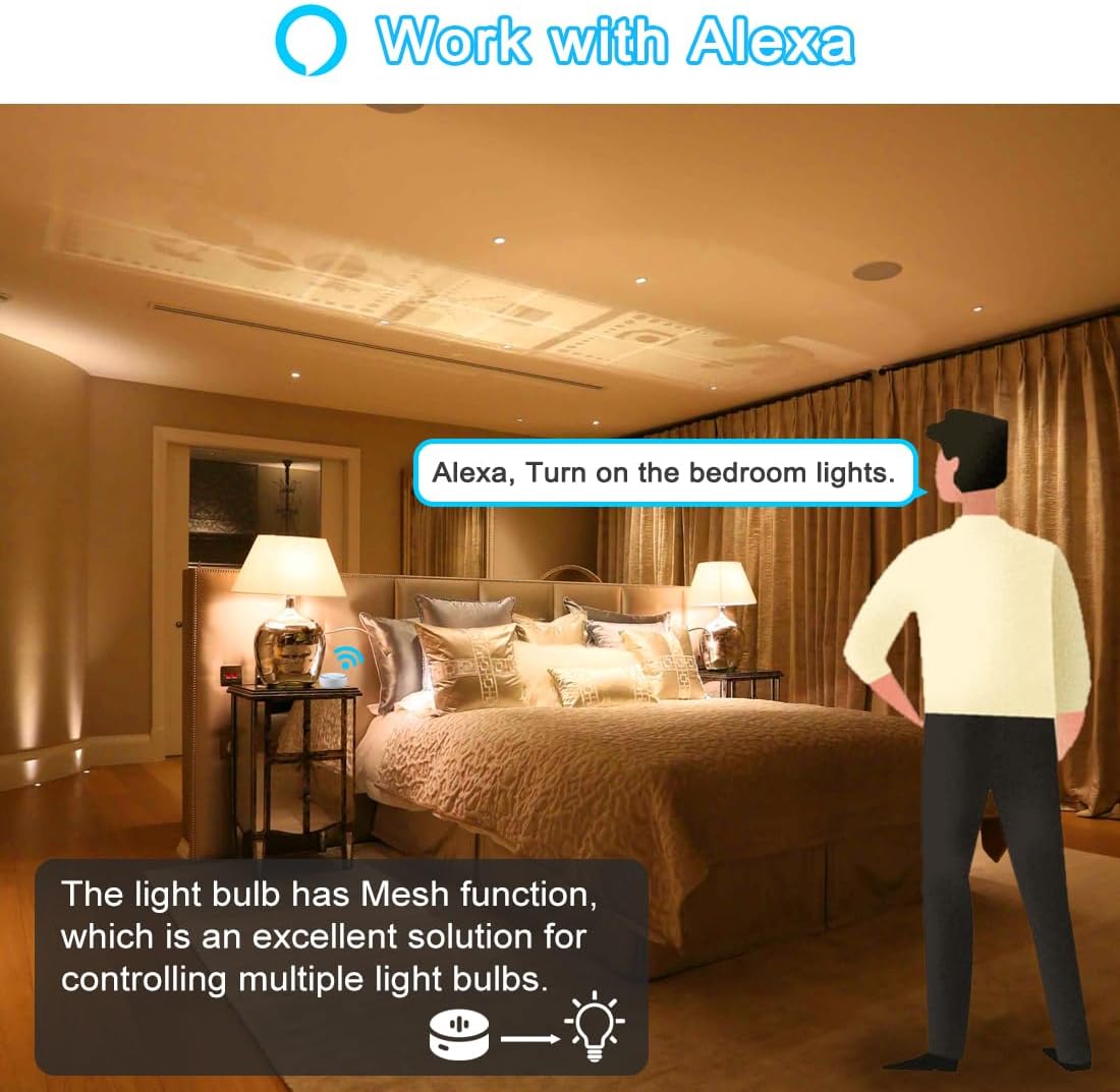 ❤Bulbs Work with Alexa: no gateway or router. BRmesh app provides many functions that favor for consumers but not avaliable in Alexa, such as colour temperature and scene settings. (Note: After adding lights to alexa, then uninstalling the BRmesh APP will not affect the using of Alexa).