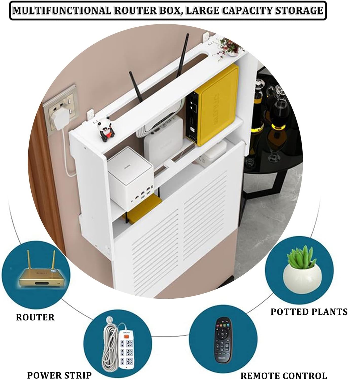 📡【Multifunctional Storage】This Router Storage Box is designed for various devices including Routers, Set-Top Boxes, Modems, and Streaming Media Devices. Keep your Cable TV Boxes, Smart TV Boxes, and other TV Accessories nized and accessible. Ideal for maintaining a tidy space while enhancing your home entertainment setup.