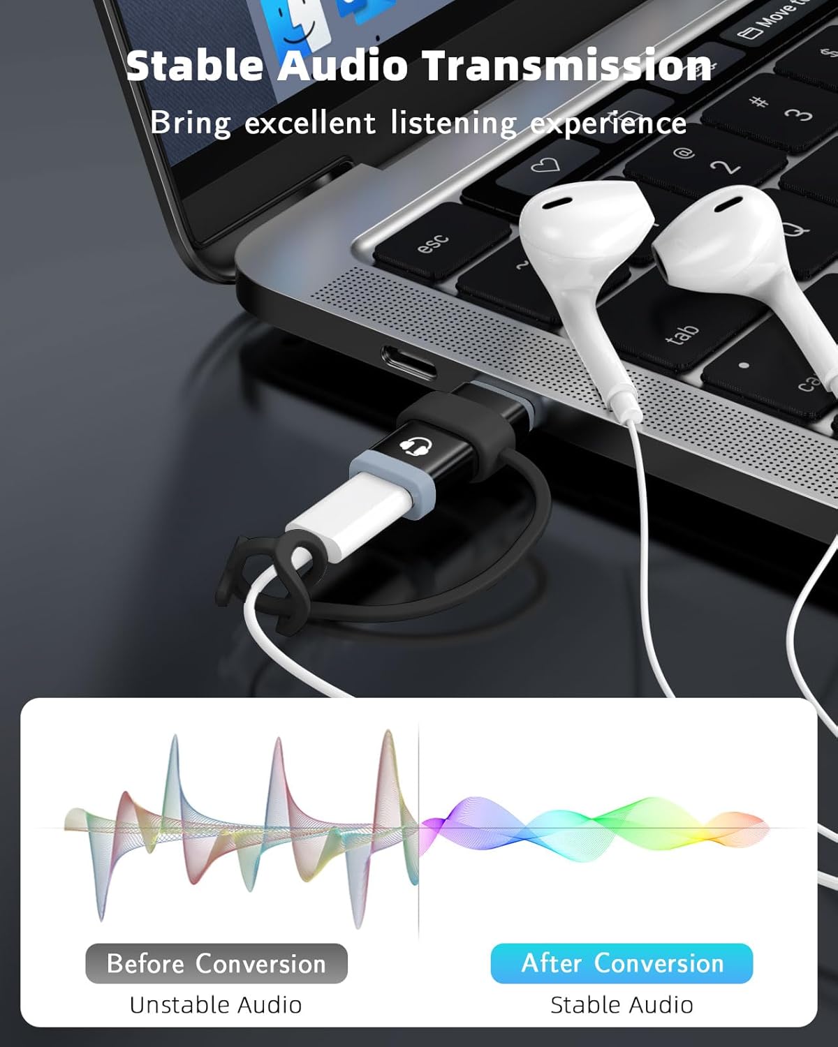 Lossless Sound Quality: Lightning to usb c adapter for headphones has a built-in decoding DAC audio chip to ensure stable audio signal transmission. It supports double-sided insertion of lightning headphones, which can effectively filter current sound and noise, better provide Hi-Fi sound, make voice calls clearer, and bring excellent listening experience.