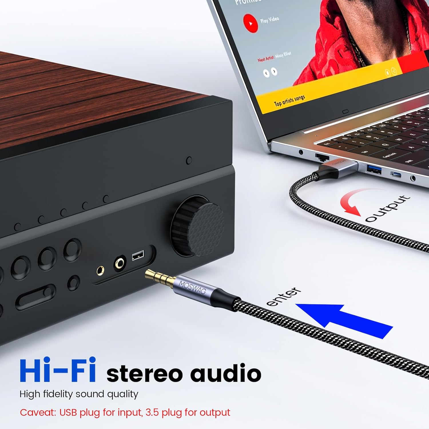 13 reviews for MOSWAG 3.28FT/1M USB to 3.5mm TRS Audio Converter, USB Male to 3.5mm AUX Stereo Audio Cable, Nylon Braided usb to AUX Converter for PC, Laptop, Windows, Mac OSX, Speaker, Headphones